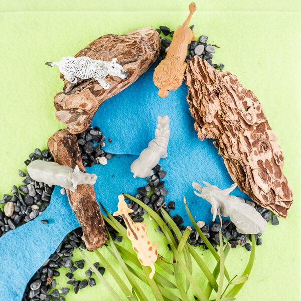 Play figures are an essential for small world play. They’re a direct path to awesomely creative, open ended play. Our animal figures at our house have been on countless adventures with our son and they’re the MVPs of our at home toy box.