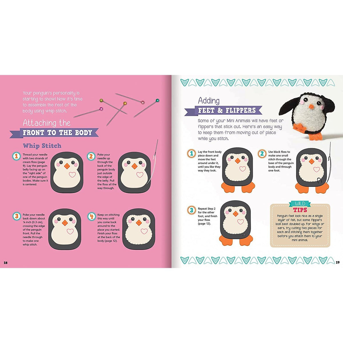 Stitch and stuff an array of adorable animal friends with Sew Mini Animals! Make your own felted seal, llama, penguin, and more. Includes instructions, patterns and materials for 12 cheerful, itty-bitty animal stuffies as well as tips and tricks to customize your own designs. Add accessories like hats, bows, and glasses to personalize your animals! With super-clear instructions and no sewing experience required, Sew Mini Animals provides hours of endless entertainment.