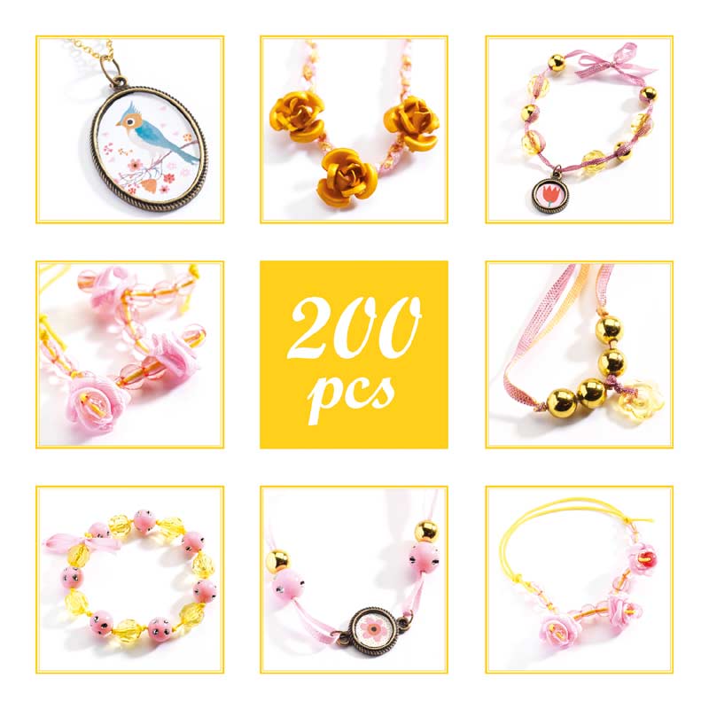 This beading kit is packed with beautiful supplies to inspire your kiddo's creativity. Included are a selection of plastic pearl beads in different colours as well as flower charms and a bird locket. There's enough colourful cord for you to make jewelry and accessories for you and your friends.