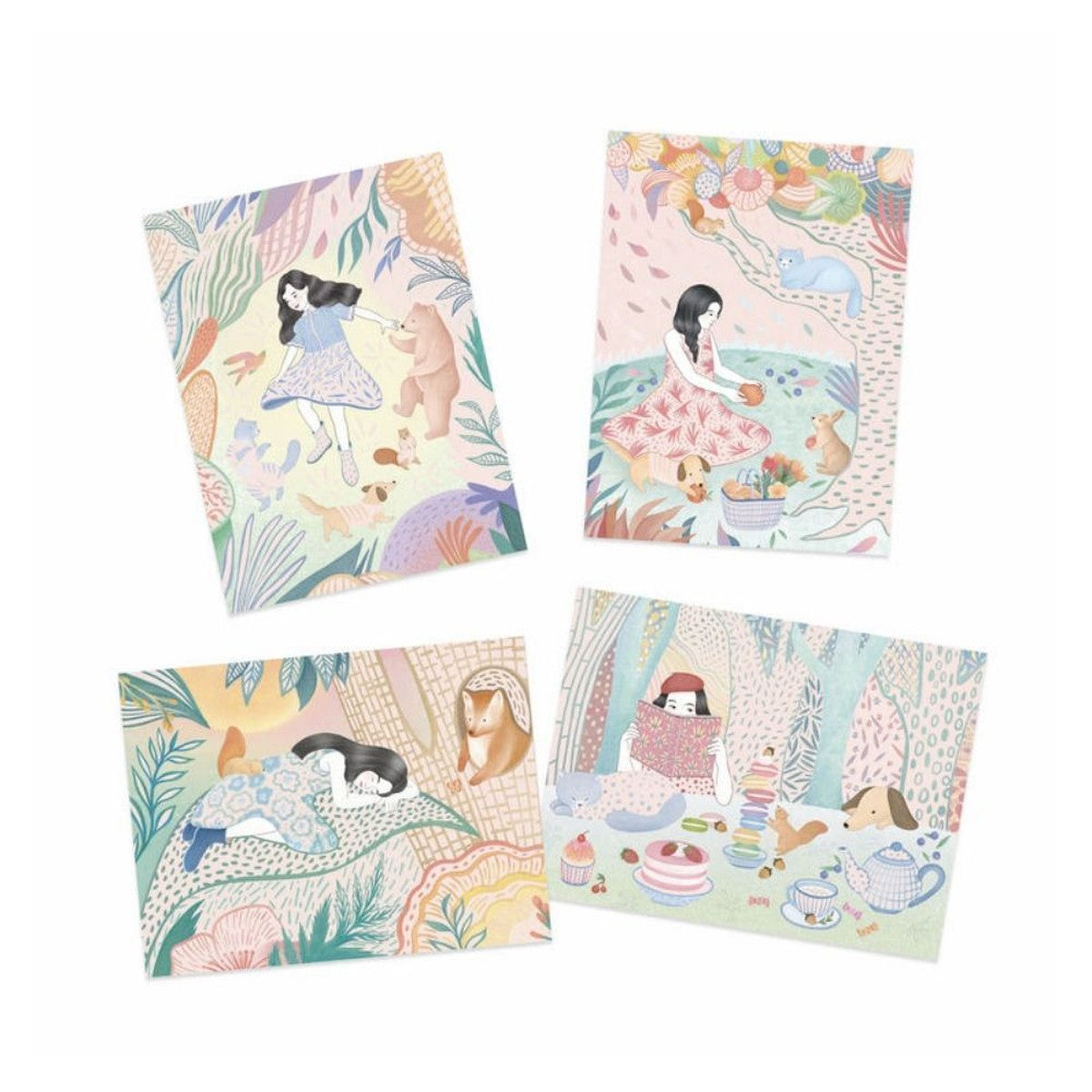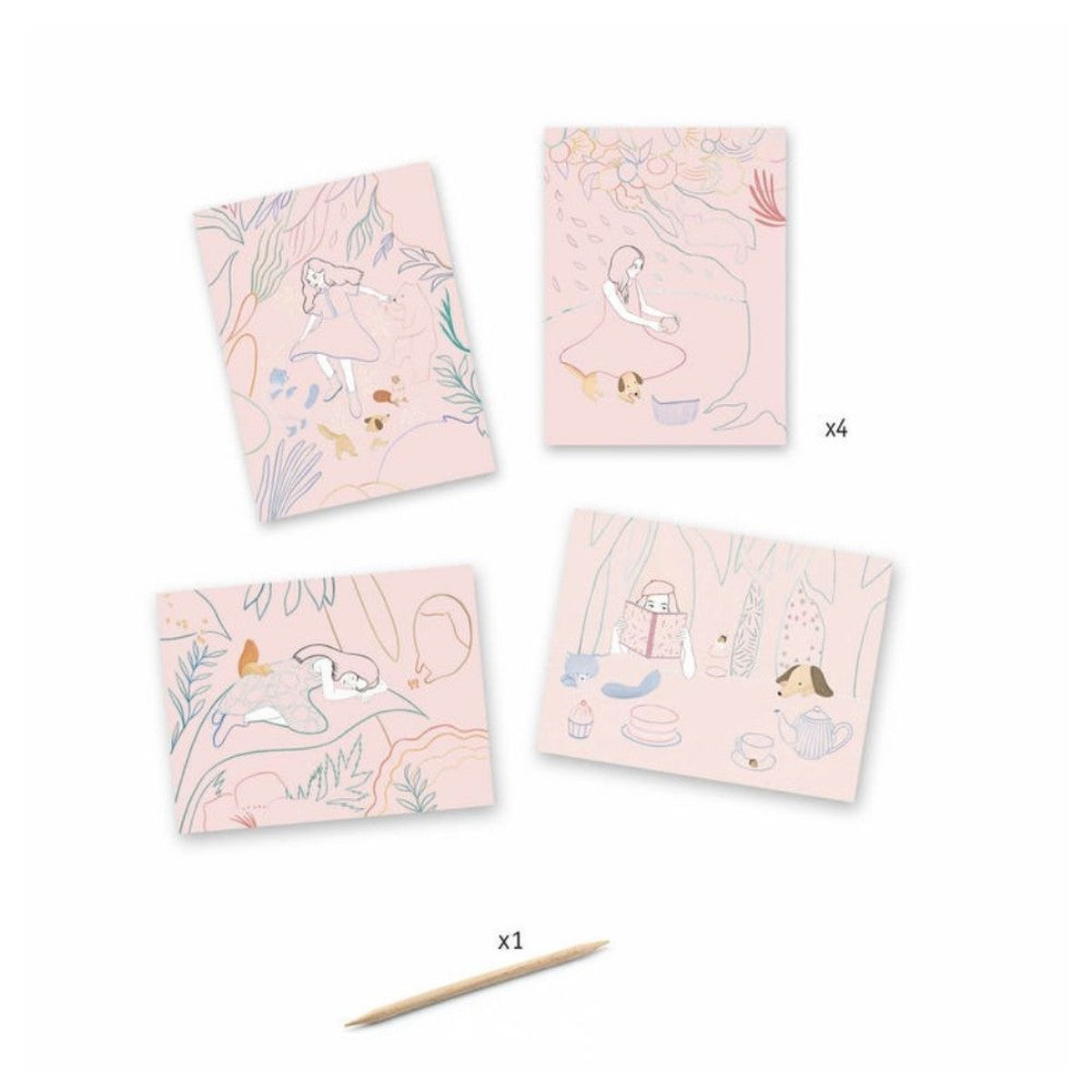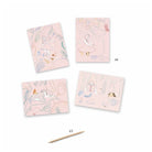 Escape for a sunny and delicious meadow picnic with these gorgeous pastel scratch cards from Djeco. This fun artistic pack comes with 4 different precious designs in a folksy style with a springy pastel palette. Comes with instructions and a scratch tool for creating your works of art.