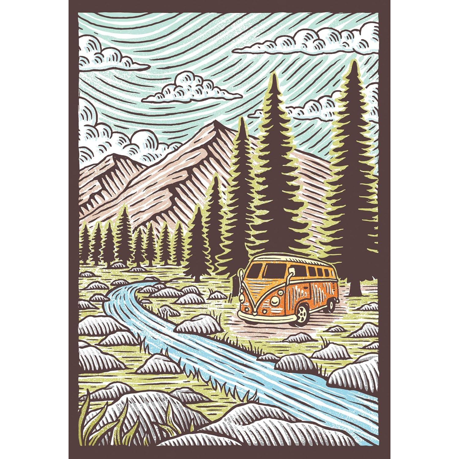 The cover sports a gorgeous woodcut-style illustration of a vintage camper van making its way through a lush forest. Inside, the pages are lined for easy writing and feature full-color spot illustrations. This journal is sure to spark creativity and wanderlust in journalers and nature lovers around the world.