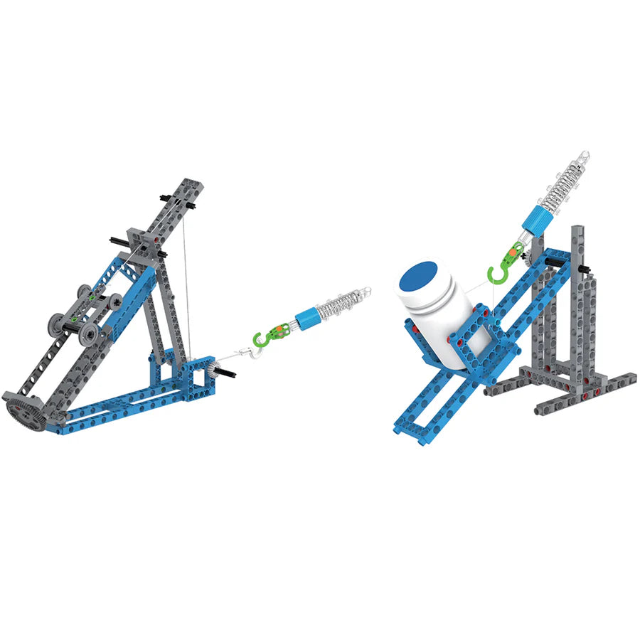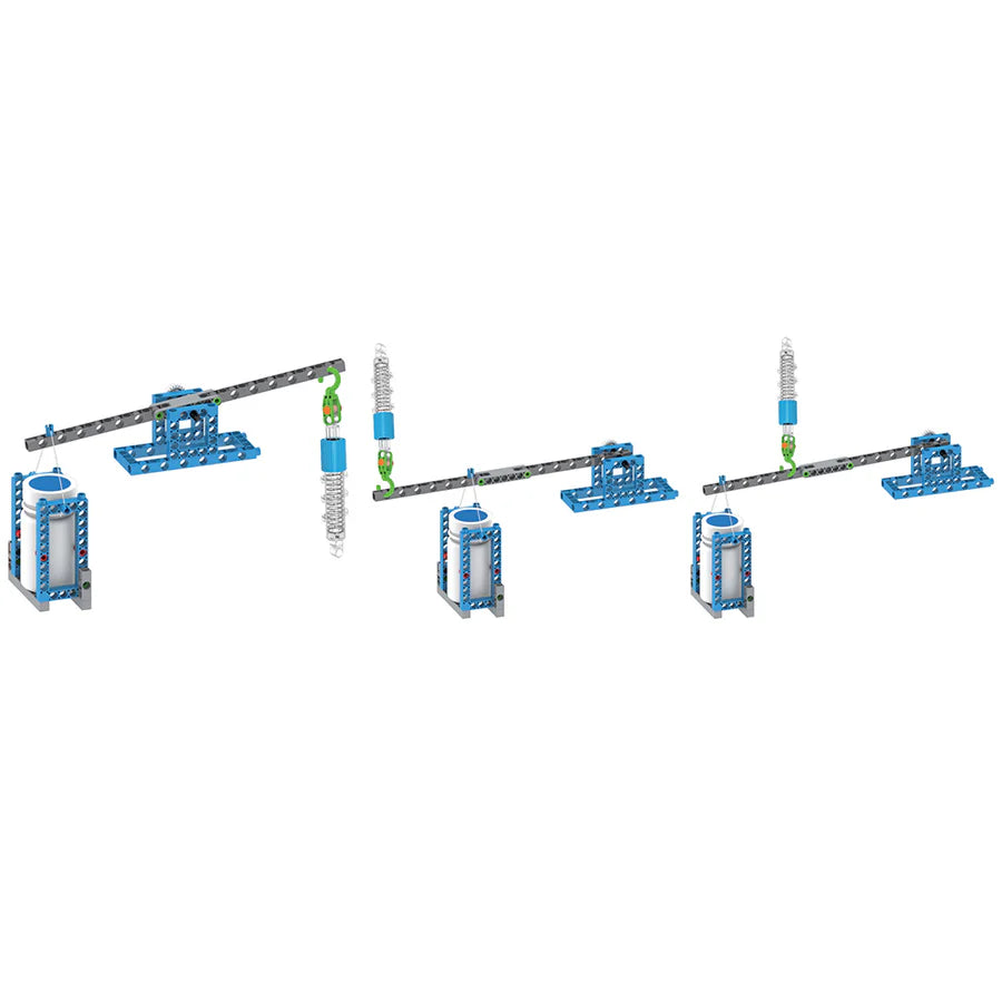 Jumpstart your study of mechanical physics by learning all about simple machines and how they’re used to make complex tasks easier to do. Through 26 model-building exercises, you’ll investigate all six classic simple machines — wheels and axles, levers, pulleys, inclined planes, screws, and wedges — as well as gears. Start off with simple models to guarantee a firm understanding of the basic principles at play, and then move onto larger, more complex models to push the machines harder and see how they can work together. Also included is a specially designed spring scale so that you can measure how the machines change the direction and magnitude of forces, making work easier to do. With this durable, modular construction system, you can see how the same basic elements combine in different ways to form each machine. The models can be assembled and disassembled again and again; combine the pieces to create your own configurations, limited only by your imagination! In addition to the invaluable hands-on experience you’ll get from model building, the 32-page, full-color manual also dives into examples of simple machines in action in everyday life. The seesaw at the playground, the wheelbarrow in your backyard, the flagpole in front of your school — all of these are examples of simple machines in the real world! So start building, investigating, and experimenting to discover how physics is all around us!