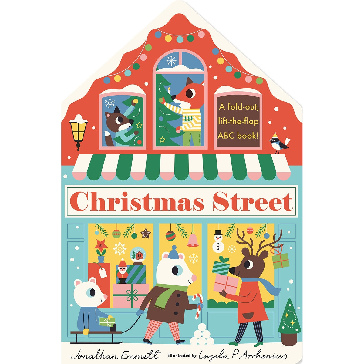 Everyone is busy on Christmas Street! Who is baking gingerbread? Who is wrapping presents? And who's that coming down the chimney? Find out in this follow-up to Alphabet Street. And after you read the rhyming story, lift the flaps to learn the letters of the alphabet and seasonal words. Then flip the book and have fun with the giant snowy concertina play-scene on the reverse! With two large, sturdy flaps on every spread, and bright, cheerful artwork from Ingela P. Arrhenius and clever rhyming text from Jonathan Emmett, this is a charming Christmas alphabet book that little ones will return to again and again.