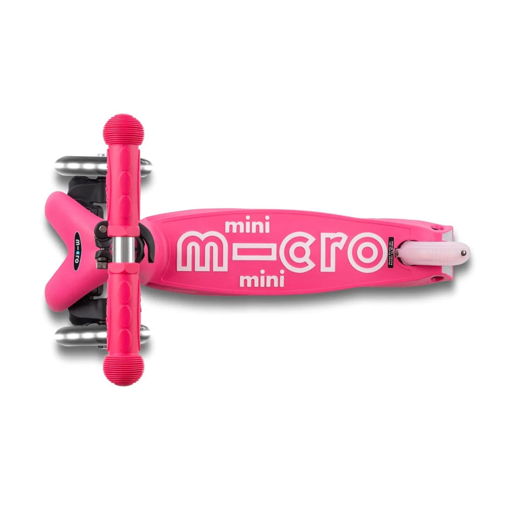 The Mini Deluxe Foldable LED scooter is for traveling tots and families on the go. The folding mechanism means that taking your child’s Mini with you wherever you go is now easier than ever – just click, fold and carry by the T-bar.