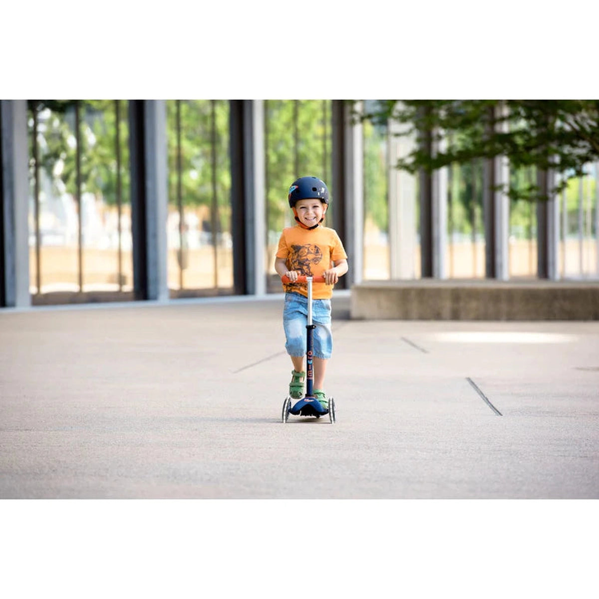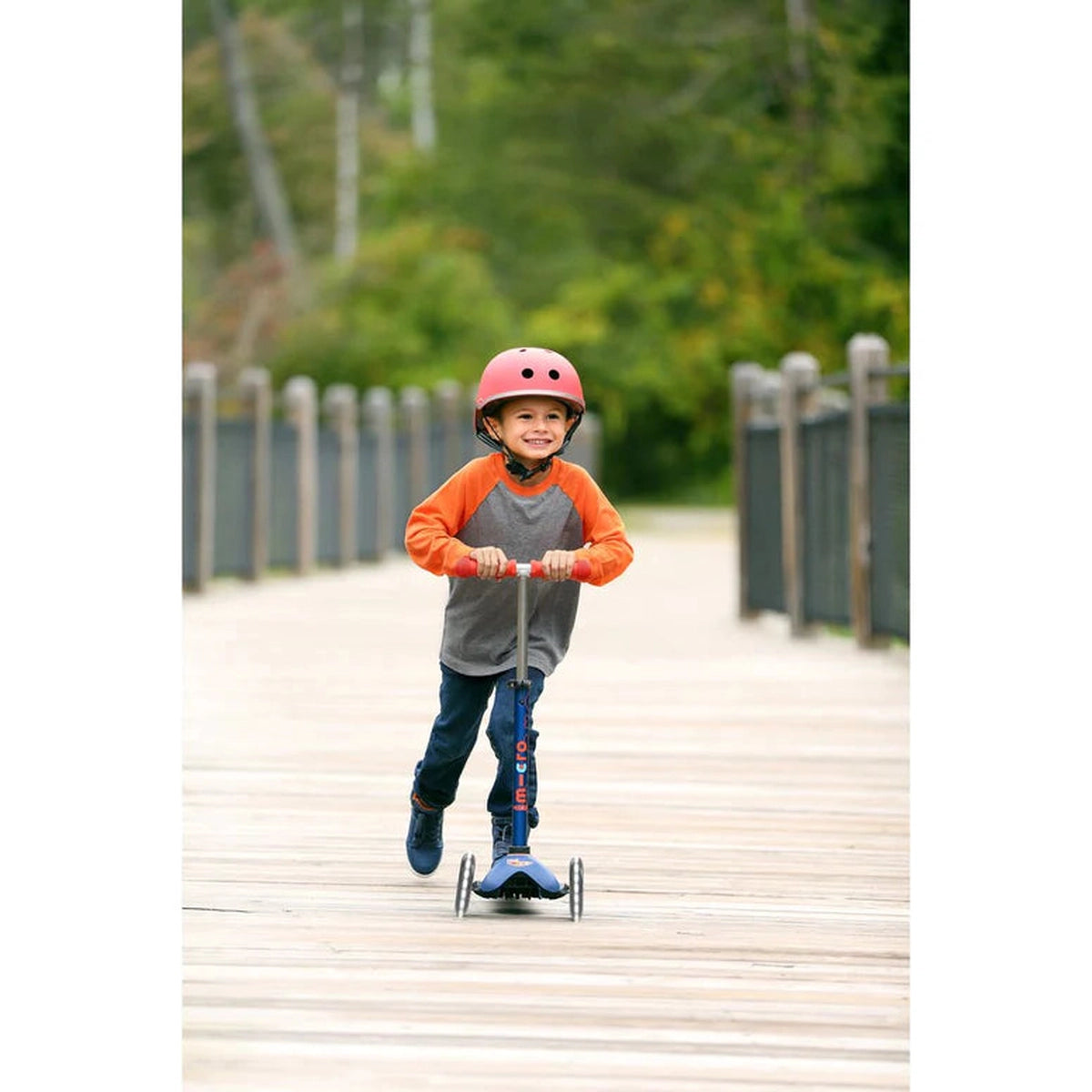 The top scooter choice for toddlers and preschool-age kids. Designed for stability and smooth-gliding mobility, the Mini LED Deluxe is a little like being on a skateboard, but with greater control and maneuverability. Features 3 wheels, gentle axle steering, and a low-to-the-ground deck. Durable and lightweight, kids will intuitively learn to steer by leaning and shifting their body weight to turn left or right, and build their confidence in the process. The three wheels are not "training wheels" but allow for a more dynamic, sporty, and playful ride!