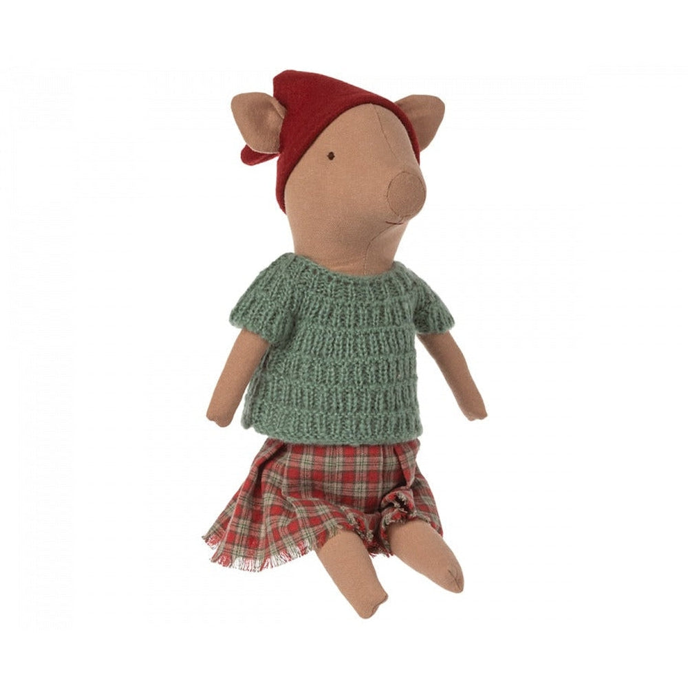 This delightfully outfitted pig is perfect for decorating your home during the holiday season, and also makes a delightful playmate. The hat is removable which allows your little one to enjoy this snuggly pig all year long.