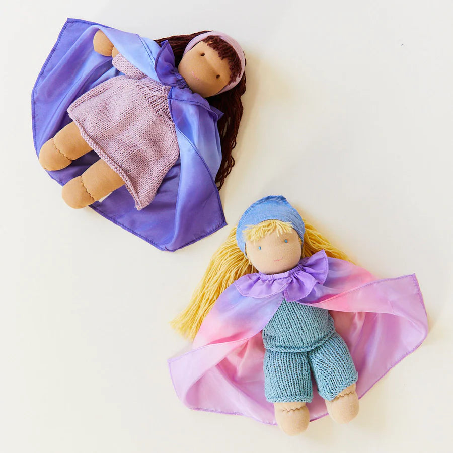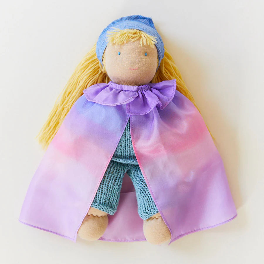 For all the miniature superheroes and fairies in your kiddo's life — this rainbow cape is the perfect accessory for their favourite doll or stuffie. The elastic neckband makes the cape easy to put on and take off and fits most 12 inch dolls and stuffies.
