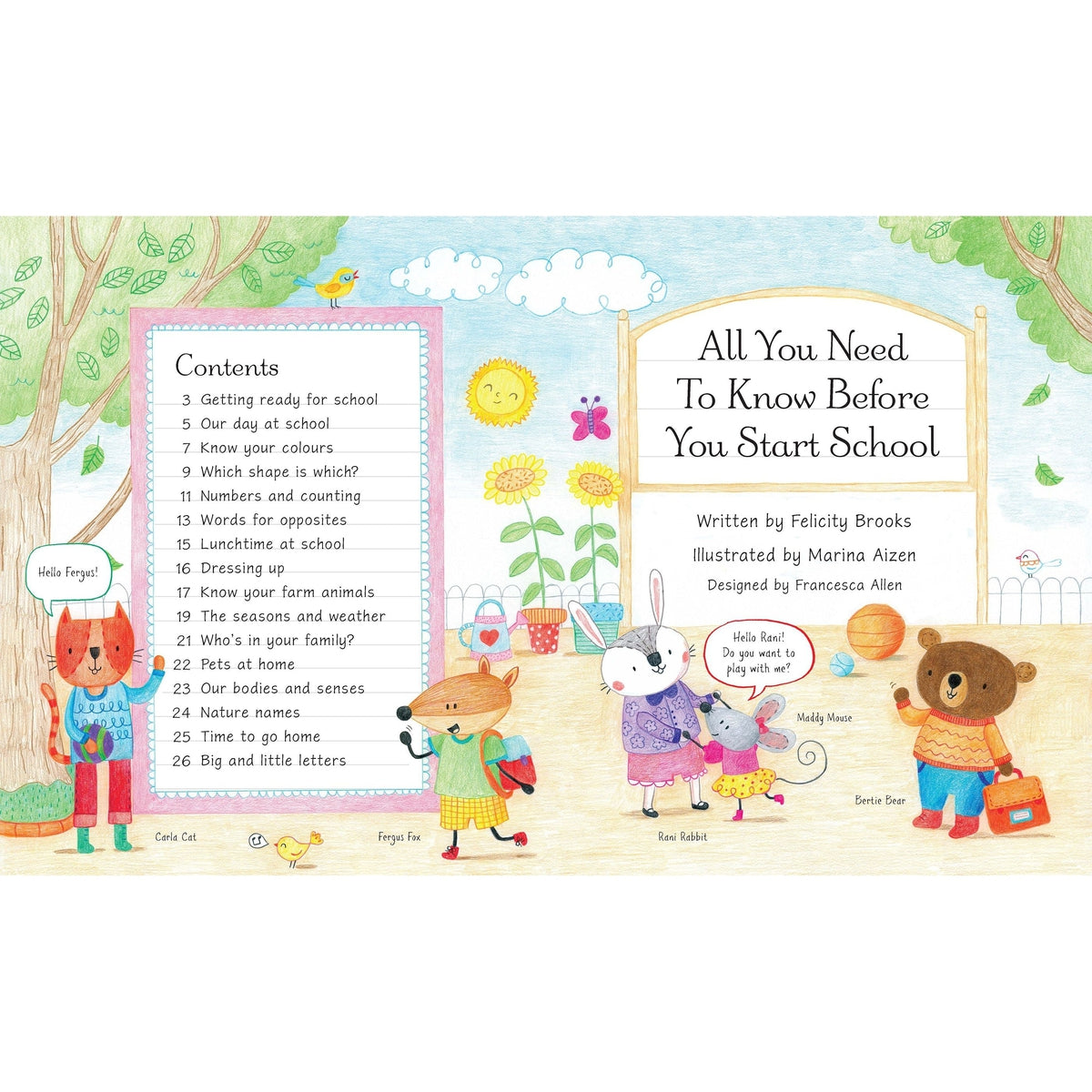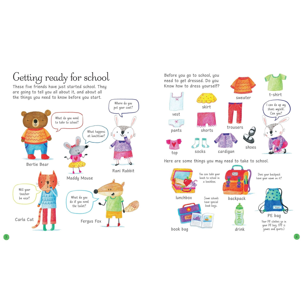 Join five animal friends as they start school in this delightful introduction to the school day, from getting dressed in the morning to home time. Charming illustrations describe the school day and some of the early years concepts children will learn, including colours, numbers and counting, getting dressed, seasons and more.