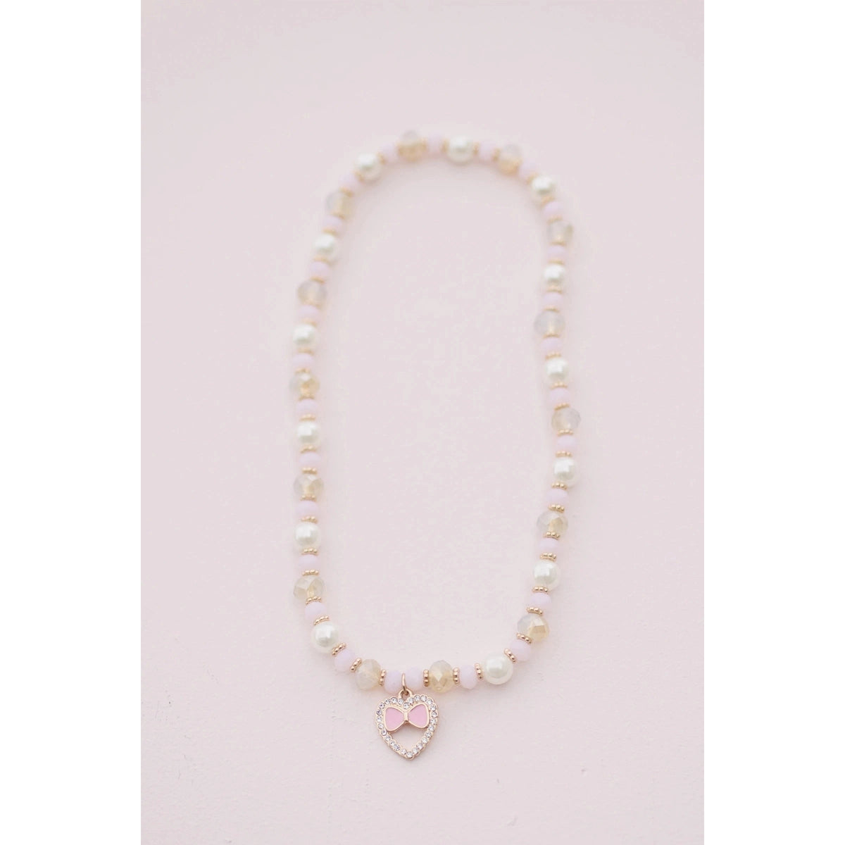 The Boutique Love Necklace is one of our most elegant necklaces yet! Strung with pink, white, and gold beads and finalized with a rhinestone in-crested heart & bow charm. This necklace is as sweet as can be!