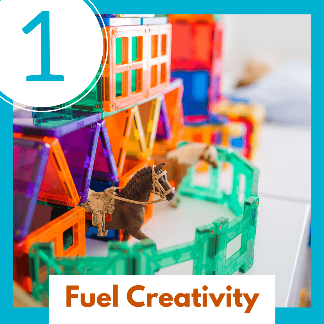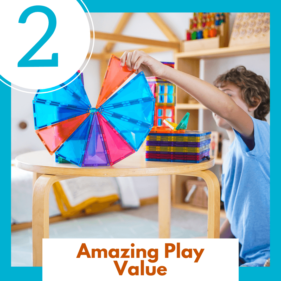 Connetix tiles are magnetic tiles that can be combined in an endless number of ways to create all kinds of structures, from royal palaces to triple decker parking garages. This makes them an ideal open ended toy to fuel children’s imaginations and creative thinking.