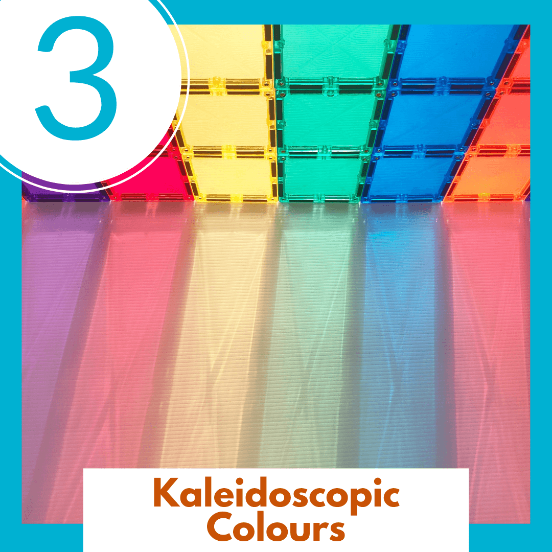 Connetix Tiles are available in Rainbow colours, Pastel colours and Clear. There are other magnetic tiles out there, but Connetix tiles are stronger, more scratch resistant and have clearer refractions (making for a more beautiful quality of light passing through the tiles).