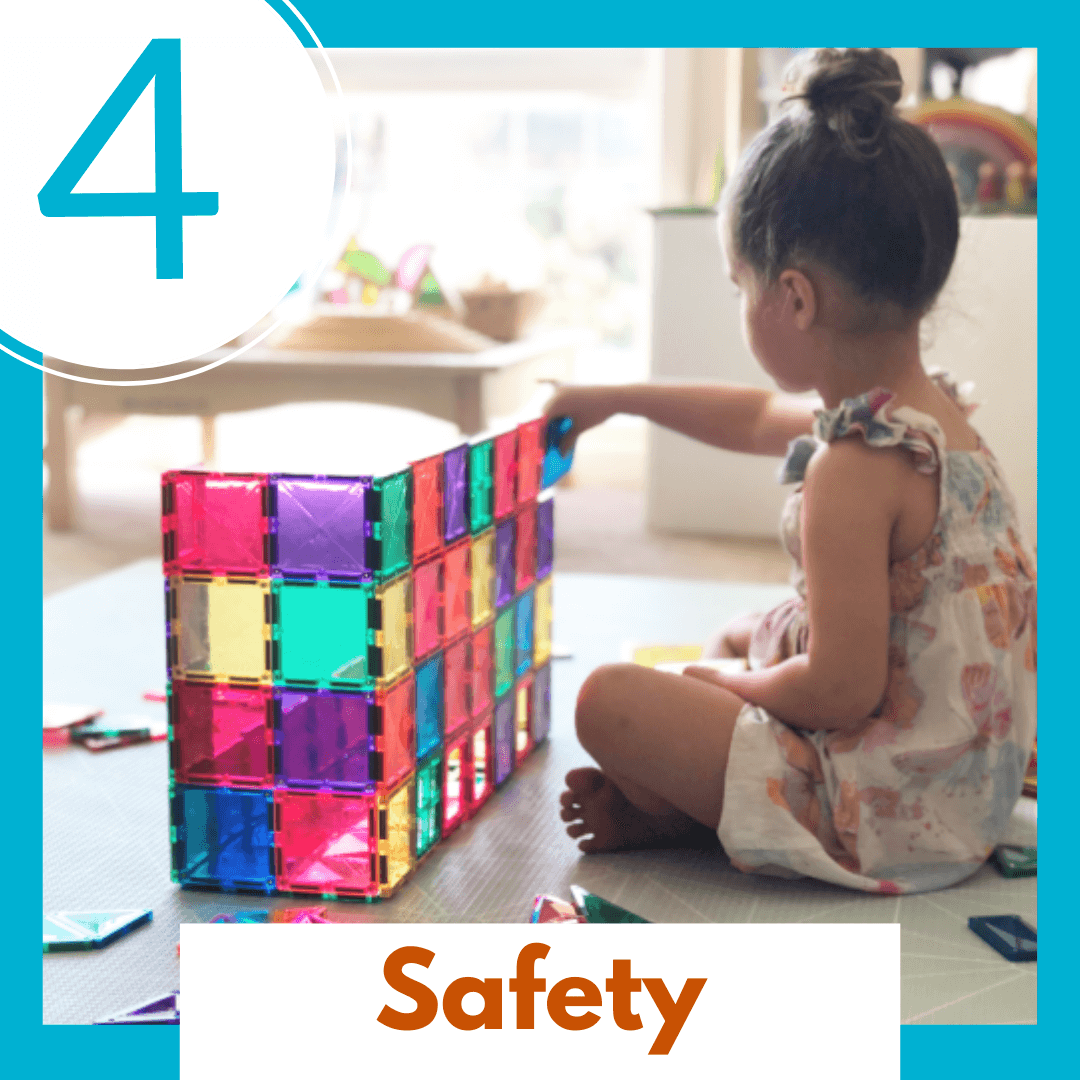 These jewel-like tiles are made with non-toxic ABS plastic that is BPA and Phthalate free. All tiles are also sealed and riveted for extra safety and their unique beveled design allows Connetix to be strong and more scratch resistant.