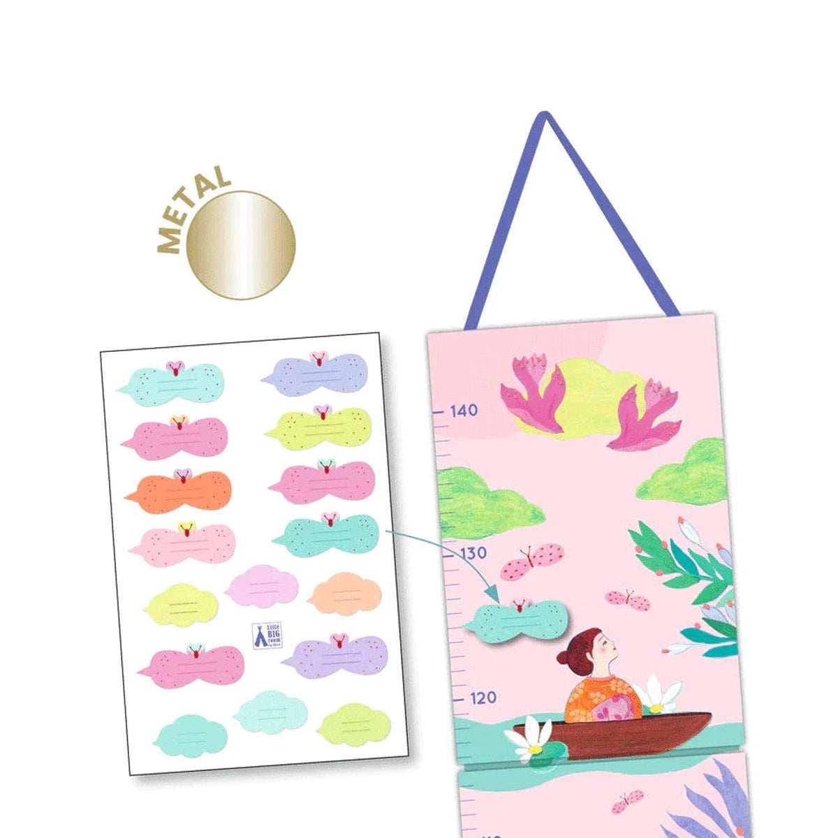 Chart your little one's growth all throughout their childhood with this illustrated height chart. This chart is made from FSC-certified cardboard and hangs on the wall with an attractive ribbon so you can easily move it to a new room or house without losing these treasured memories. Keep track of birthdays and special occasions using the included stickers.