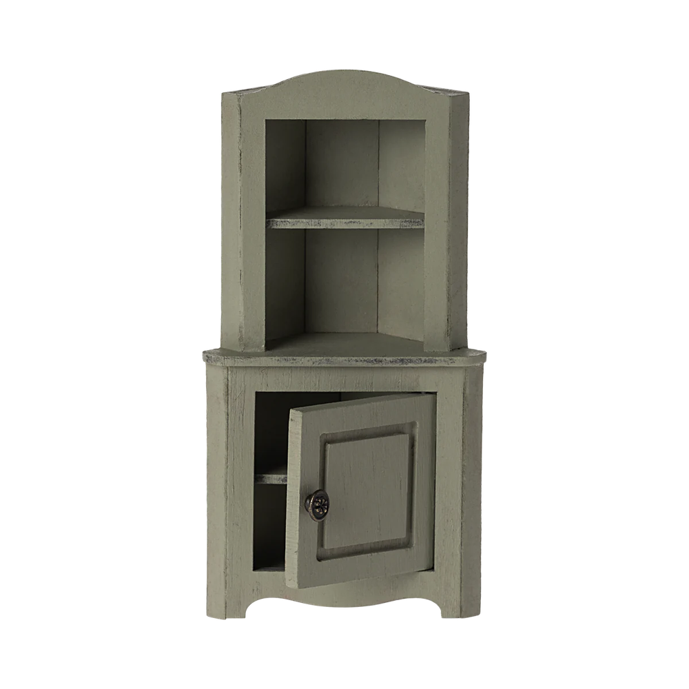 The perfect closet to store a lot of stuff. It fits perfectly into a corner so it will look stylish in the home decoration. It has a vintage finish - variation in the paint may occur. This closet fits perfectly into the mouse hole farm house.