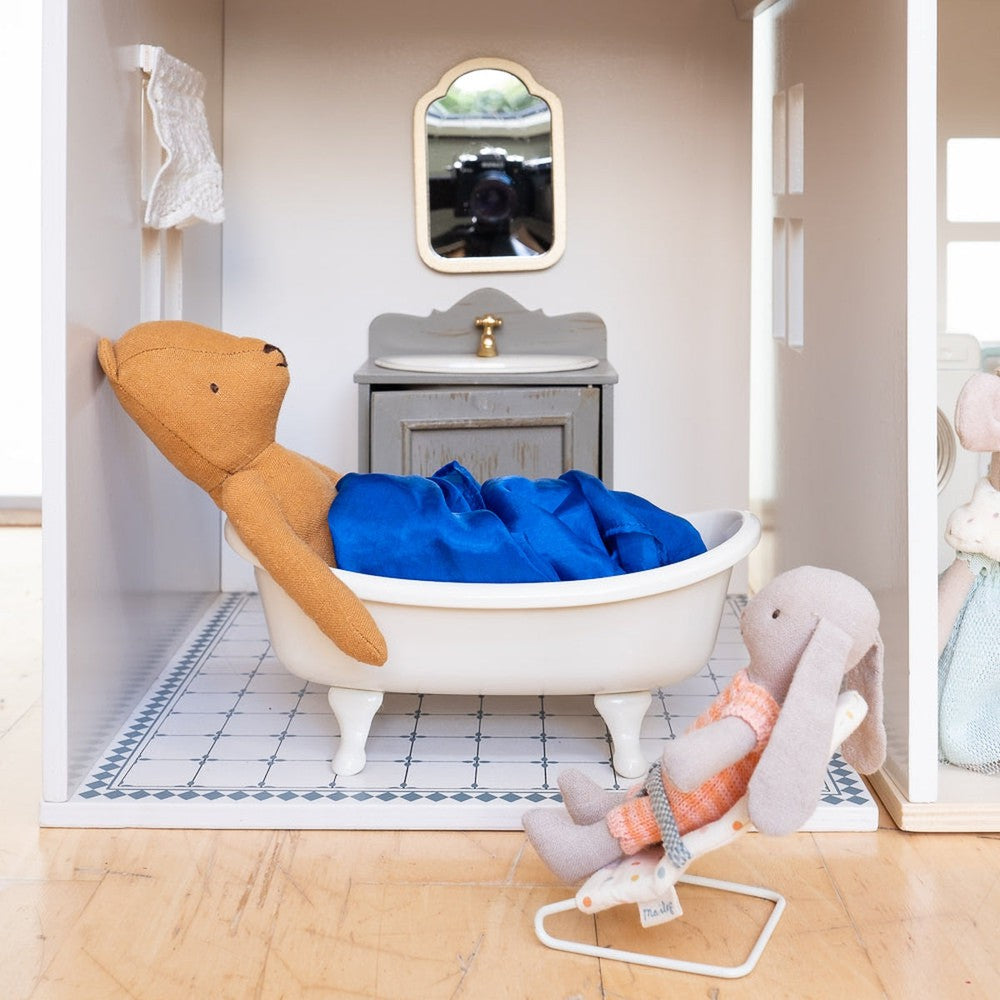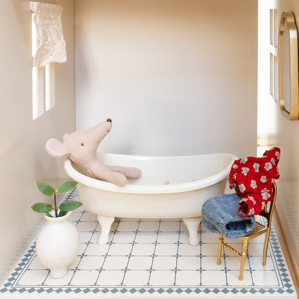All your beloved Maileg friends will need a bath once a while. The vintage bathtub fits perfectly in the Maileg Dollhouse & Bathroom. Perfect for micro-sized friends.