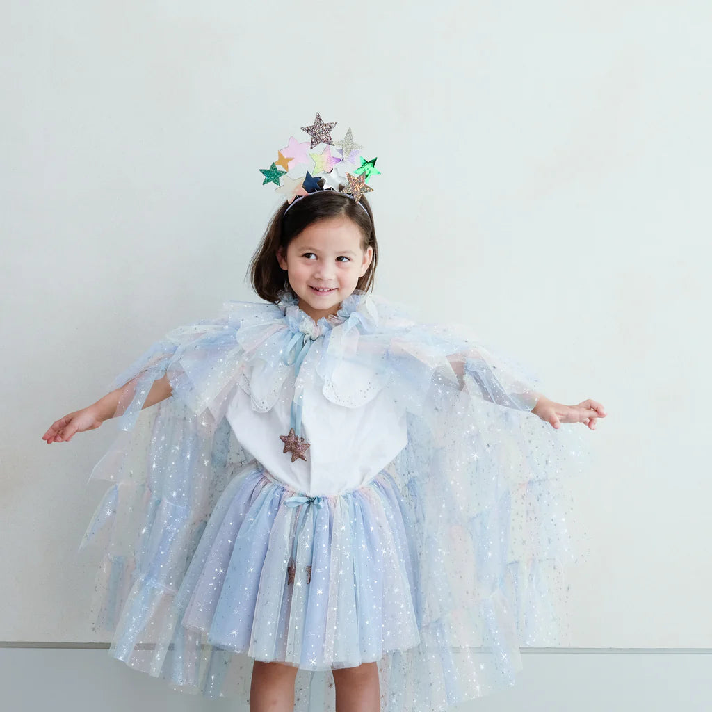 They'll be twirling out of this world with our celestial rainbow tutu! Perfect for parties, everyday fun, or just dreamy dress up days! Wear with our celestial rainbow cape for a truly dazzling rainbow look!