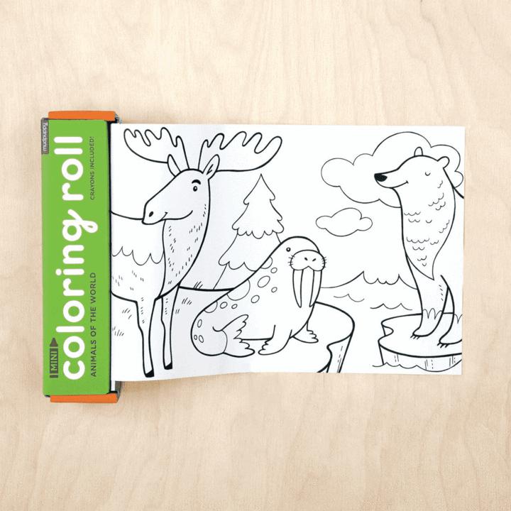 Mudpuppy animals of the world mini colouring roll
