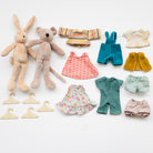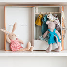 This unique wardrobe suitcase from French company Moulin Roty has everything you need for playtime dress-up included inside! Open up this cute decorative suitcase to find inside a Sylvain rabbit (20cm) and Nini mouse, as well as a selection of their clothes. There is a drawer and hangers to put everything away nicely when finished picking the outfits for your little friends. Mix and match pieces and take the case along with you anywhere for some imaginary playtime!