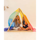 Sarah's Silks giant playsilks are 5.84ft by 2.92ft and are dyed with non-toxic, eco-friendly dyes. One of the most versatile toys, one moment playsilks are a canopy to sit under, the next they are boiling lava to jump over. One can be grass to feed your horse, and another might be a doll carrier, a cape, or soup in a pot! The play options with playsilks are as limitless as your imagination.