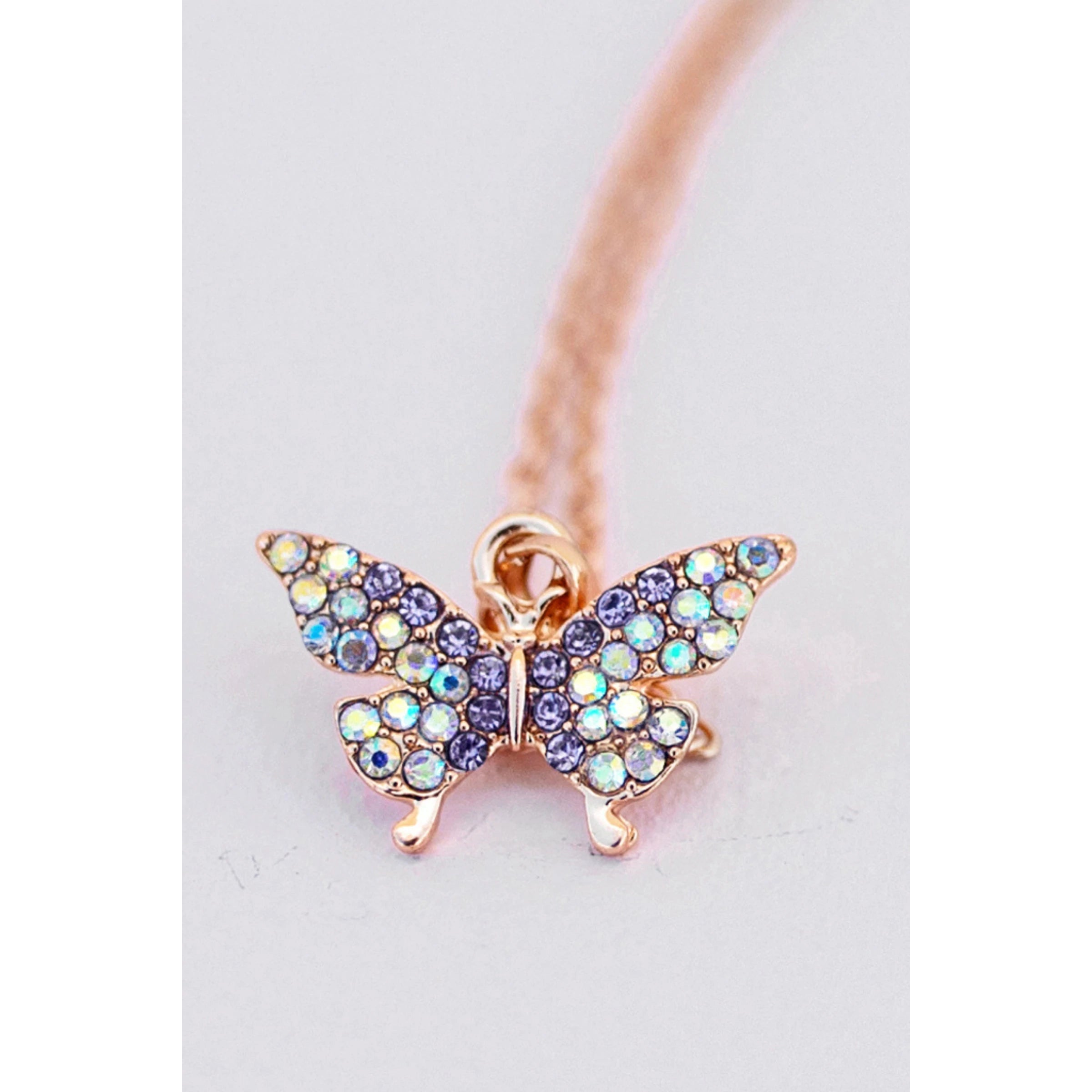 This rhinestone necklace is the perfect gift for the girl who loves to flaunt her wings. The necklace features a delicate butterfly, which is embellished with glittering rhinestones. The butterfly is strung on a beautiful chain, which can be adjusted to fit any neck size.
