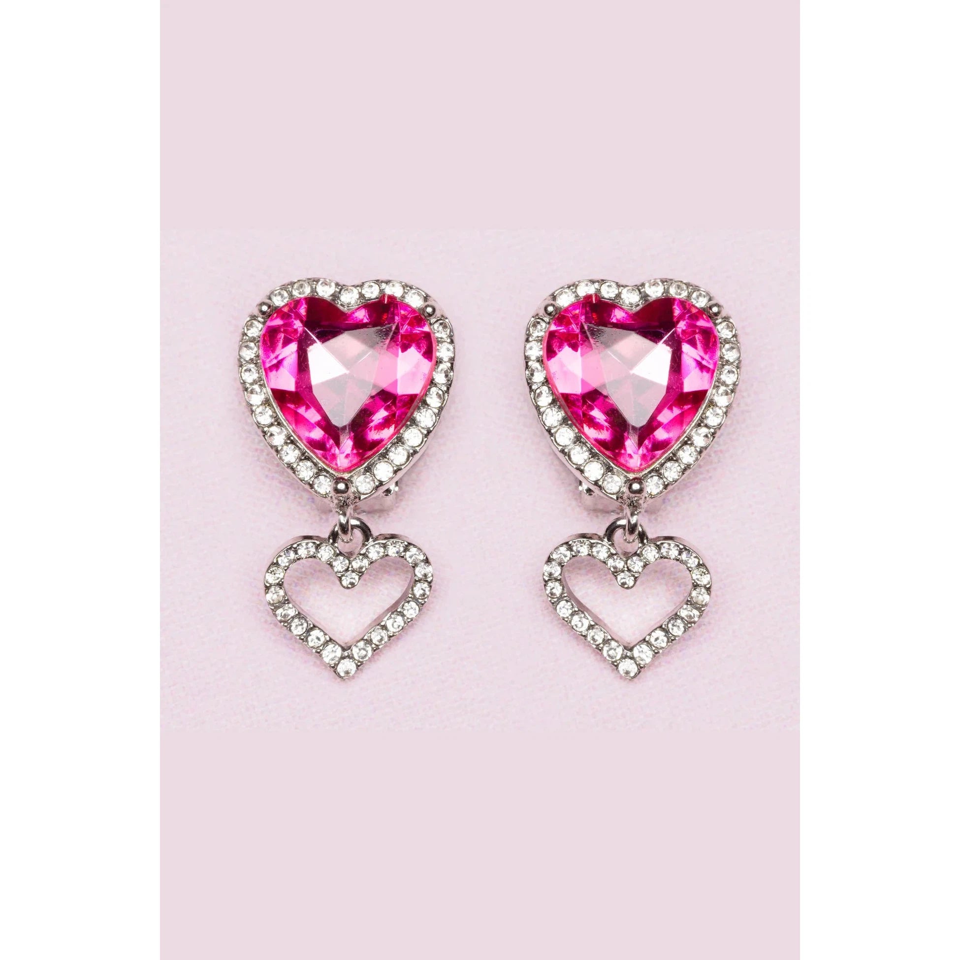Our Boutique Heart Jewel Clip-On Earrings are the perfect accessory to add a touch of elegance to your look! The centerpiece of these earrings is a mesmerizing heart-shaped jewel, delicately adorned in a captivating shade of pink and surrounded by beautiful rhinestones & finished with a drop heart. Its lustrous surface reflects light from every angle, showcasing its brilliance and creating a dazzling effect.
