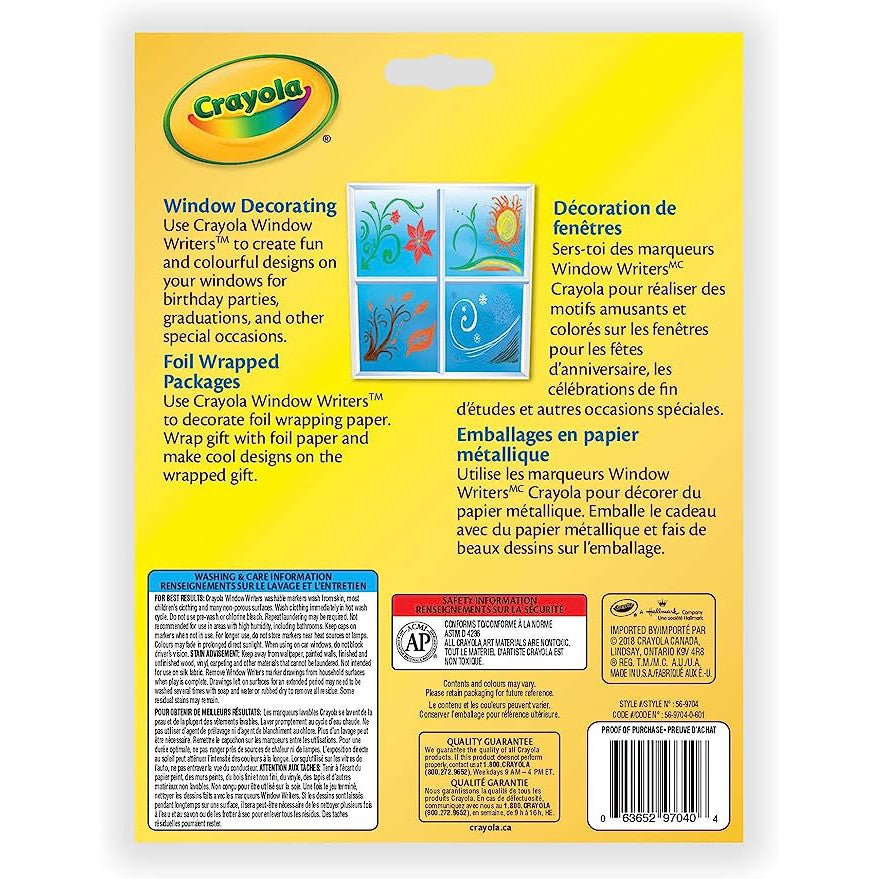 Includes 10 washable broad line window markers. Decorate windows, glass, mirrors, foil and more! Turn any window or mirror into a big, bold, beautiful work of art! Washable and easy clean up.