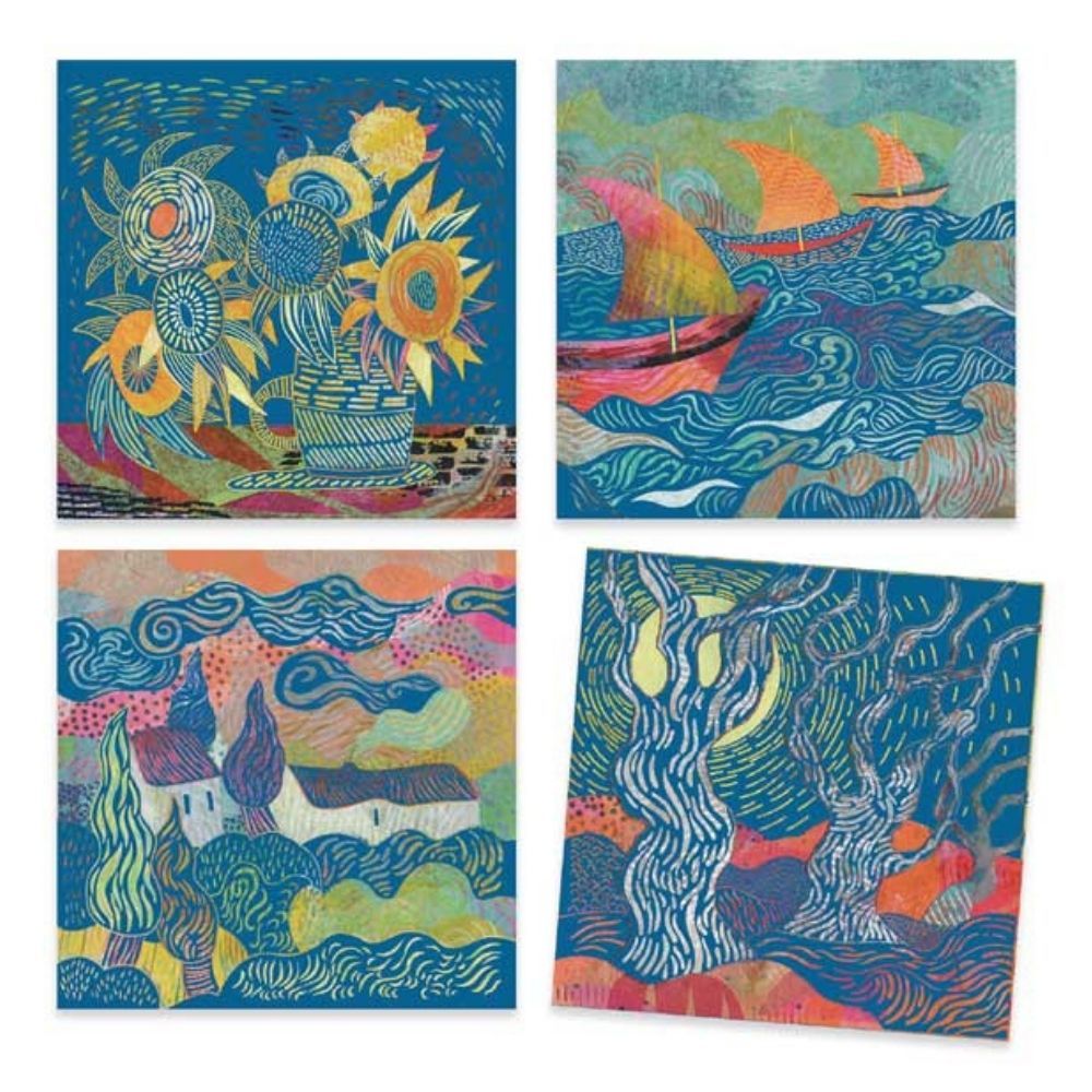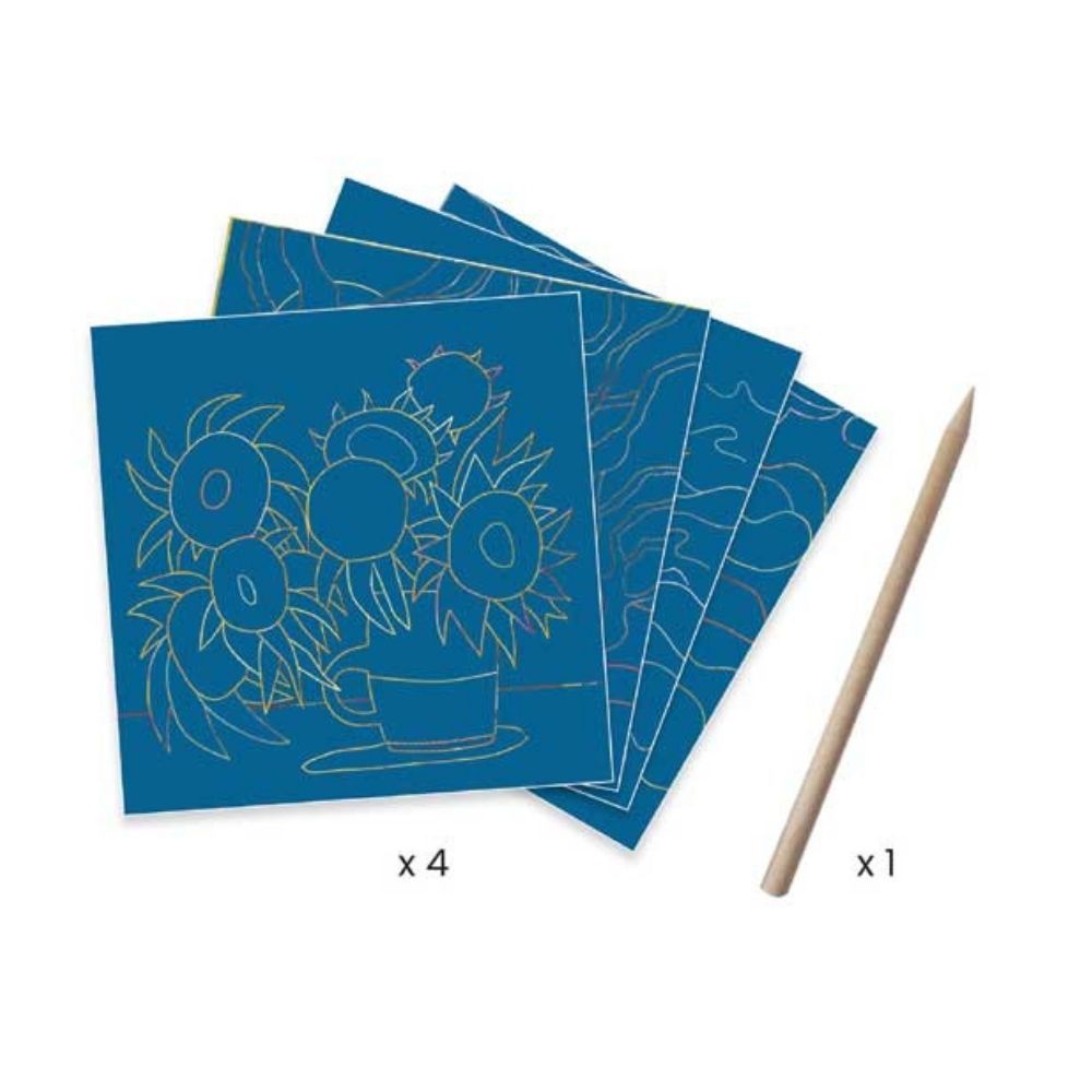 Invite your child to discover and explore the distinct artistic style of Vincent Van Gogh with this crafty kit. This scratch card activity kit is in the instantly recognizable style of the pre-Fauvism master. Use the wooden stylus to scratch the surface of the cards and reveal the scenes imagined by the illustrator. The compositions are gradually revealed and the landscapes come to life! A fun and creative learning activity for your future artist.