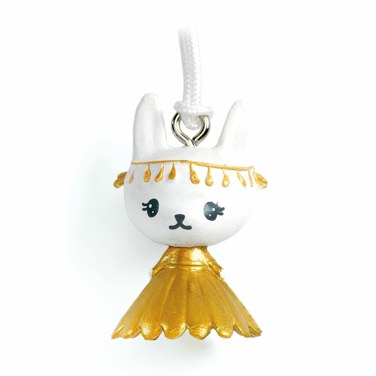 This white metal key ring features a pendant of Margo, a white rabbit wearing a golden gown. Easy for kiddos to clip, can be used for keys, or as a charm to adorn backpacks and bags.