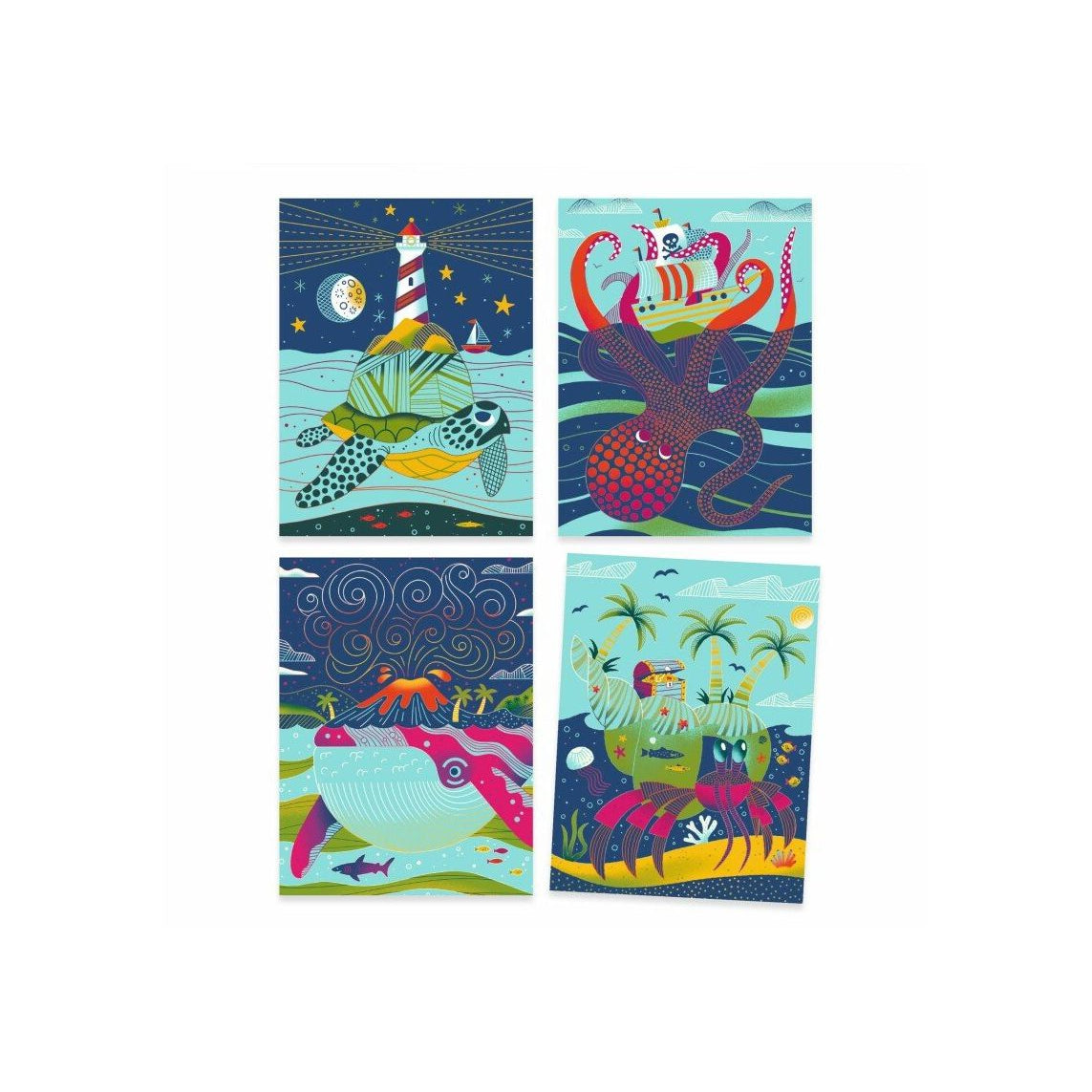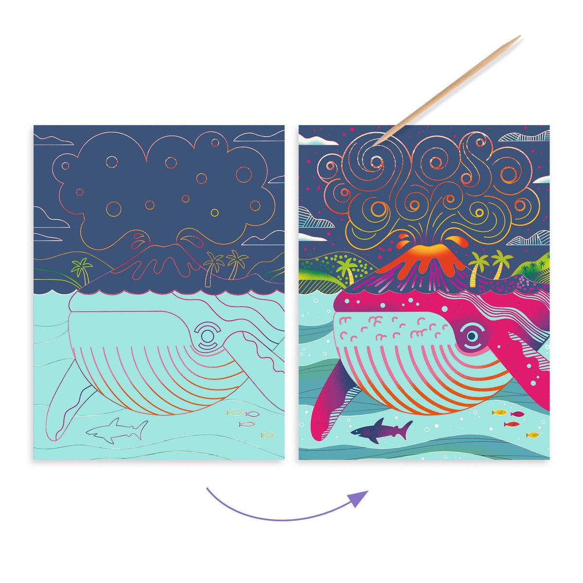 Invite your child to discover and explore the marine surprises within this crafty kit. Follow the lines and use the wooden stylus to scratch the surface of the cards and reveal the magical underwater world. The compositions are gradually revealed little by little, making for a fun and creative art activity for your future artist.