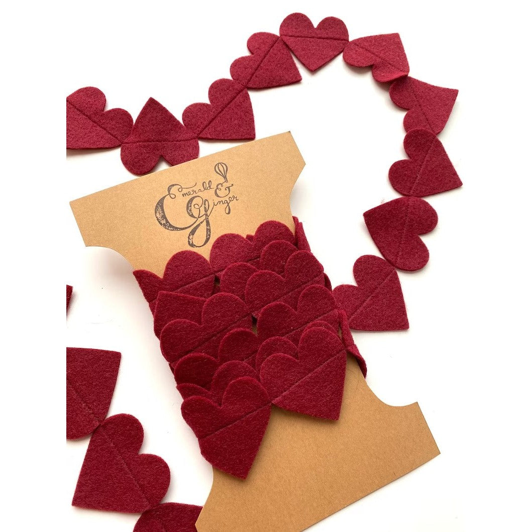 Emerald & Ginger handmade felt burgundy red hearts garland