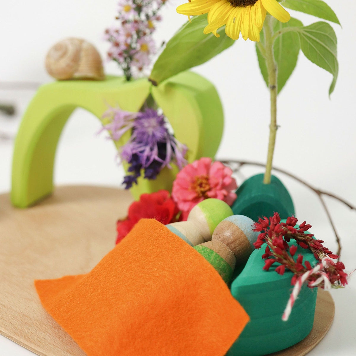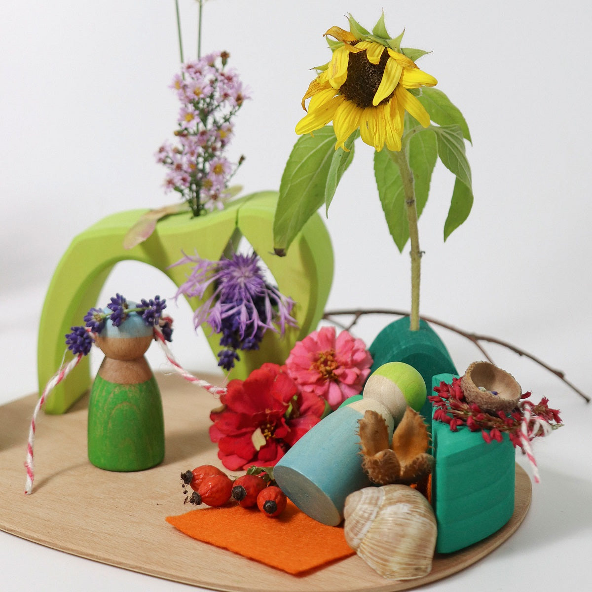 Small World Play are the perfect starter sets for creative play. The Into the Woods set inspires kiddos to build worlds, act out stories, create designs, construct buildings, build marble runs, decorate seasonal tables, and more. Use the string to thread beads, and design faces and emotions. Add natural elements you've collected, such as leaves, sticks, and stones to create miniature forests and worlds all your own.