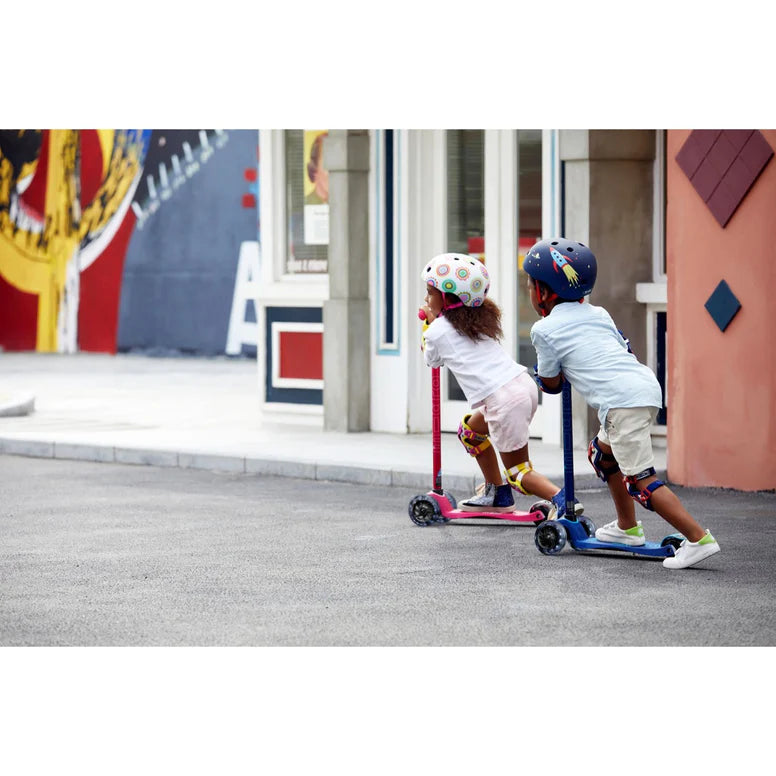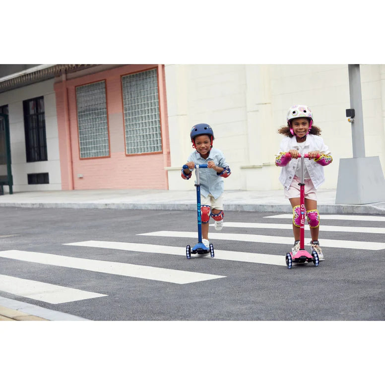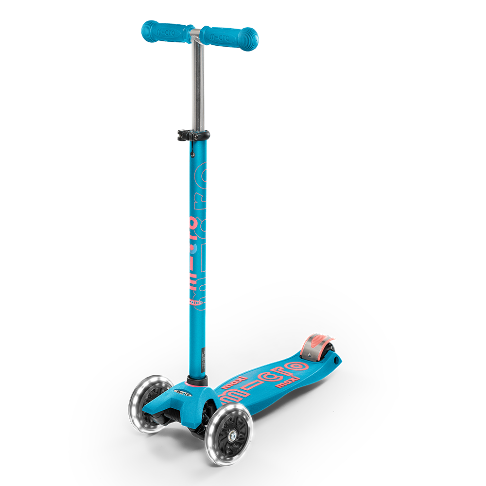 The top scooter choice for elementary school-age kids. Designed for stability and smooth-gliding mobility, the Maxi LED Deluxe is a little like being on a skateboard, but with greater control and maneuverability. Features 3 wheels, gentle axle steering, and a low-to-the-ground deck. Durable and light-weight, kids will intuitively learn to steer by leaning and shifting their body weight to turn left or right, and build their confidence in the process. The three wheels are not "training wheels" but allow for a more dynamic, sporty, and playful ride!