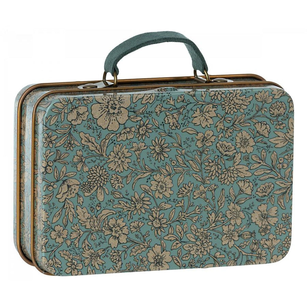 The classic Maileg metal suitcase in a new beautiful teal blue floral print. Fantastic for any occasion: small gifts, gift cards, storage of small items, or for small soft toys such as a Maileg mouse, which can squish perfectly inside.