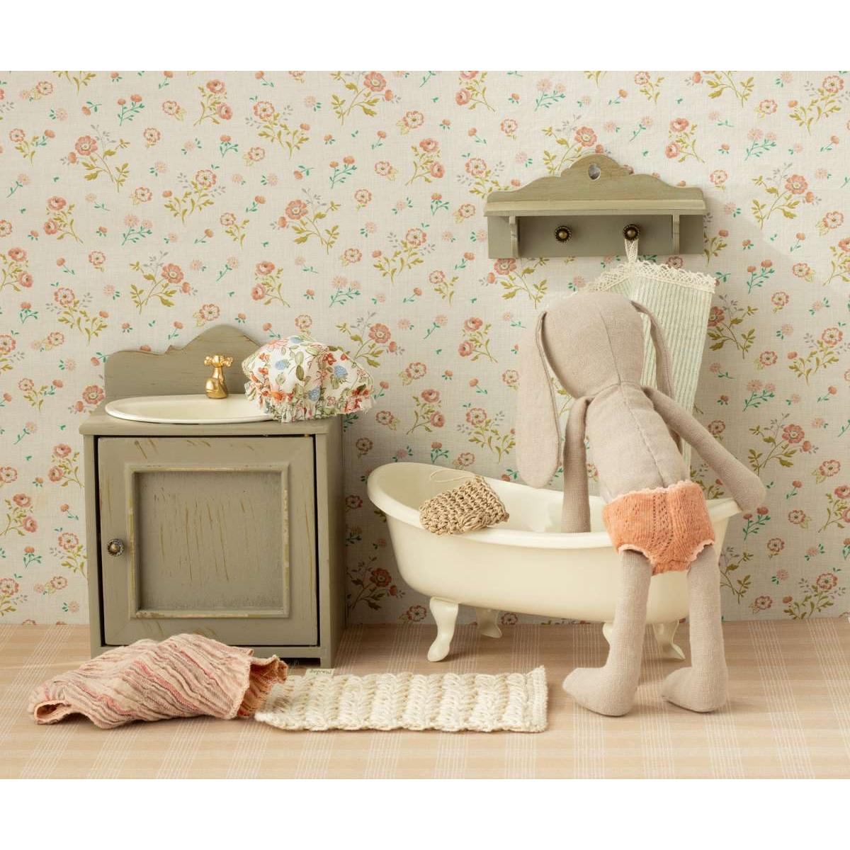 Plenty of fun out in the grass and dirt means a lot of washing up to do. Perfect for pretend houseplay, this miniature washing machine is just the right size for Maileg rabbits and bunnies. Durably made of metal, with a hinged door that opens, you can get all your shorts and shirts squeaky clean.