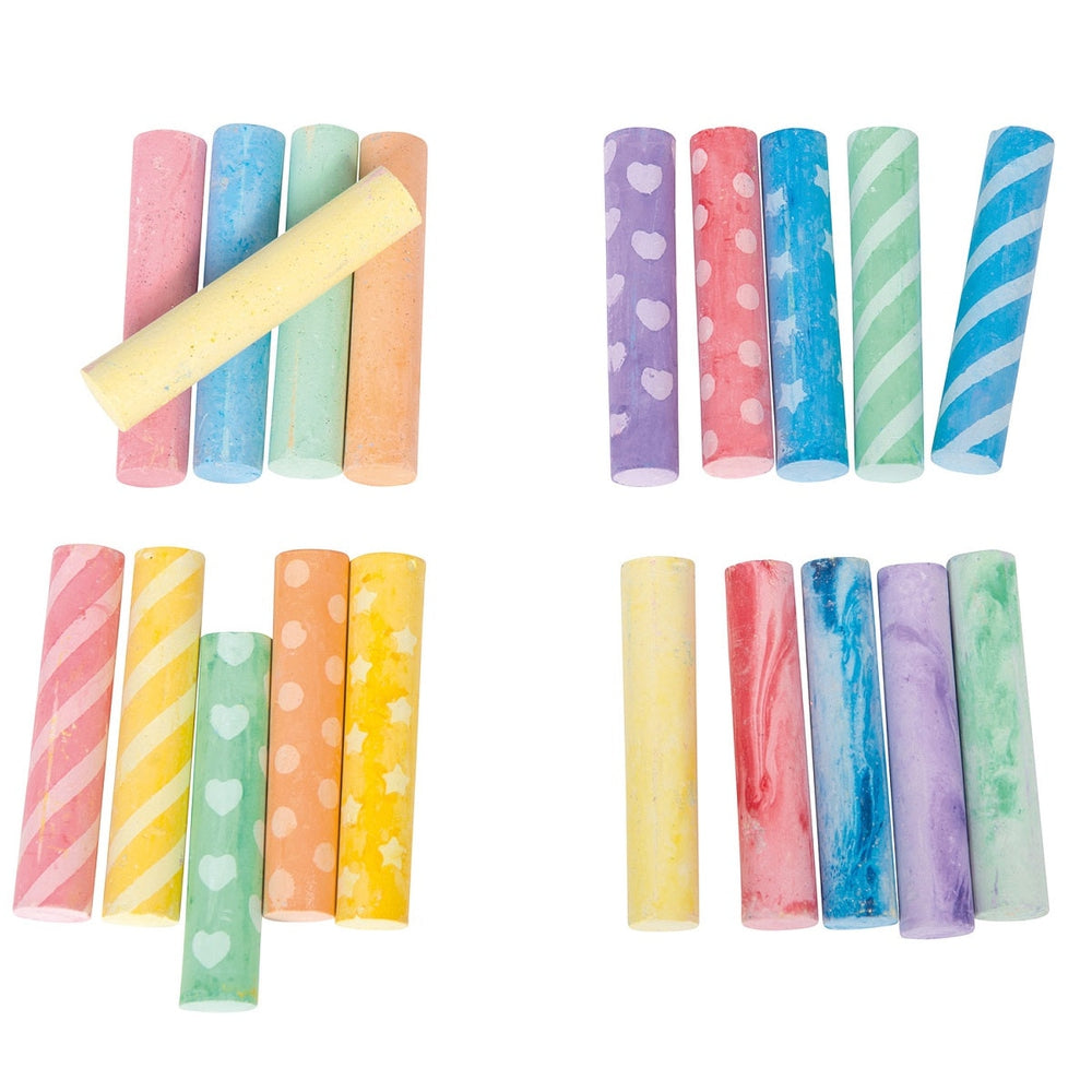 This summery set of sidewalk chalk contains 20 chalks, 6 colours total, with sticks that have geometric patterns, marble effect, or glitter. Comes in an easy-carry bucket, perfect for drawings or hopscotch battles on-the-go!
