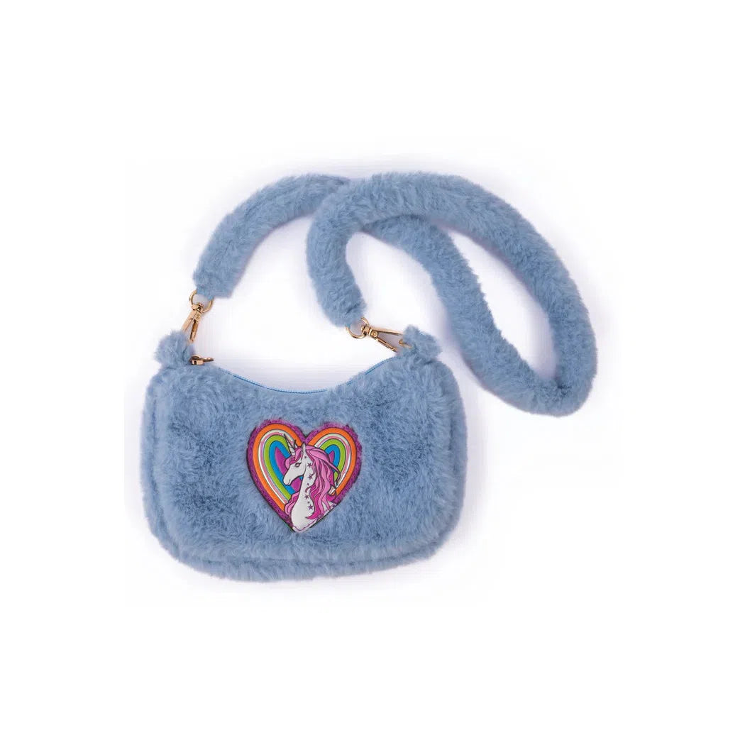 The soft periwinkle fur gives this purse a cozy, huggable feel, while the crossbody strap ensures hands-free convenience for all your adventures. Perfect for kids, this purse is both a charming accessory and a practical way to carry treasures.
