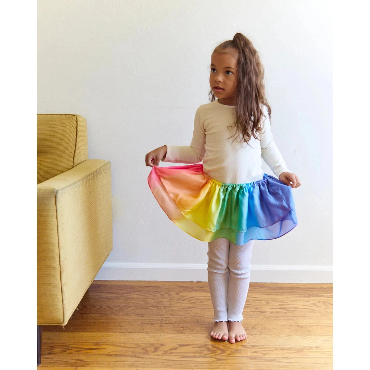 Silk Tutus are comfortable, versatile, and made for dancing, playing, and movement of all kinds! Little ones are able to easily slip them on and off all by themselves and wear them over their favorite outfits for added fun throughout the day!