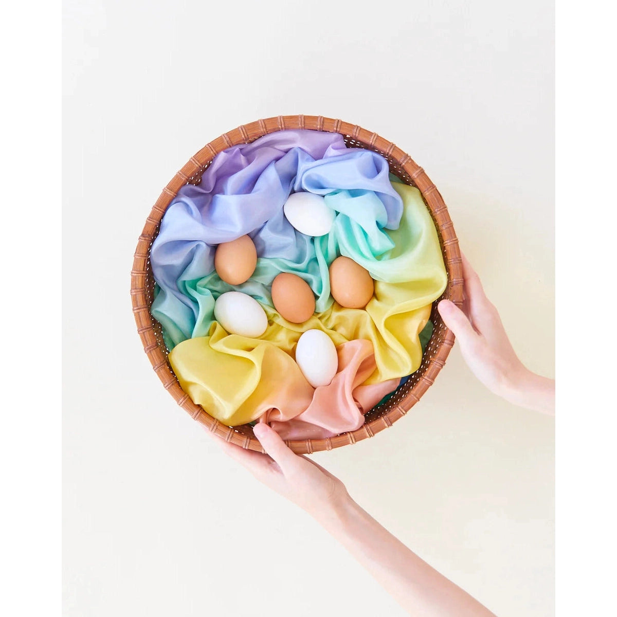 This limited edition soft rainbow playsilk is based off of the very first Sarah's Silk, but in muted pastel tones. Sarah's Silks playsilks are 35" squares that are dyed with non-toxic, eco-friendly dyes. One of the most versatile toys, one moment playsilks are a canopy to sit under, the next they are boiling lava to jump over. One can be grass to feed your horse, and another might be a doll carrier, a cape, or soup in a pot! The play options with playsilks are as limitless as your imagination. Available in a rainbow of colours, choose your favourite or collect a variety for even more fun.