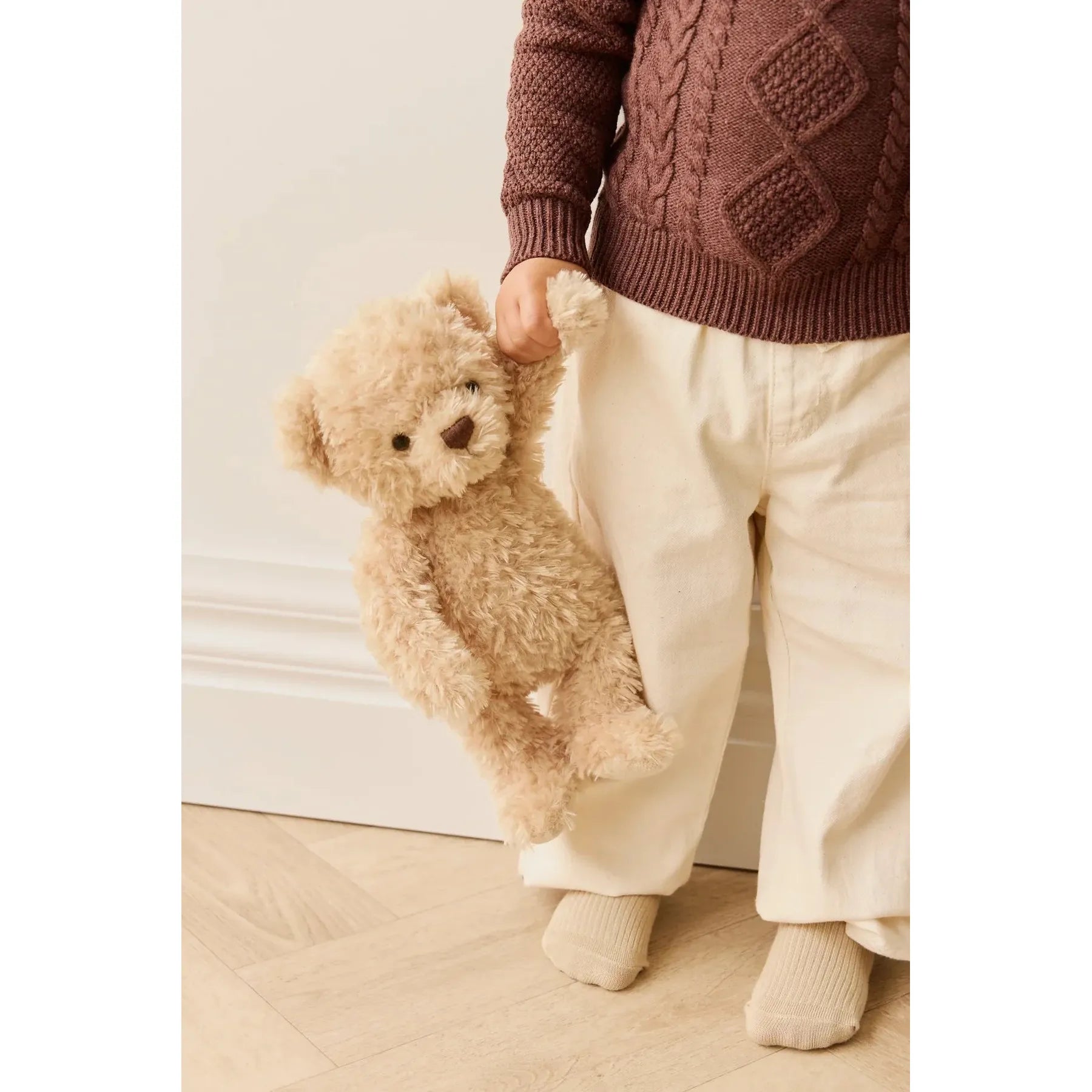 Perfectly sized for the ultimate cuddle, he'll accompany your family on all their daily adventures. His ultra-soft fur and delicate colors make him an ideal gift for little ones looking for tenderness and comfort.