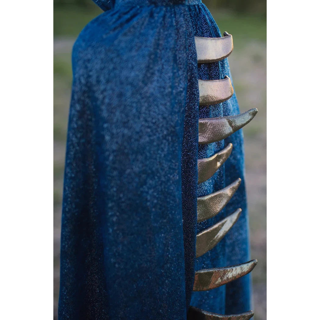 This gorgeous cape is fearless with its spectacular fiery blue eyes, dramatic golden spikes and horns, and a stuffed head with great design details. This cape will get your little one ready for countless hours of exciting playtime and fantasy-filled adventures! The fabric is soft, comfortable, and designed to look like a mysterious midnight blue sky with sparkles imitating millions of stars in the sky! This is the ultimate cape to encourage creative and imaginative play, and it’s of course machine washable.