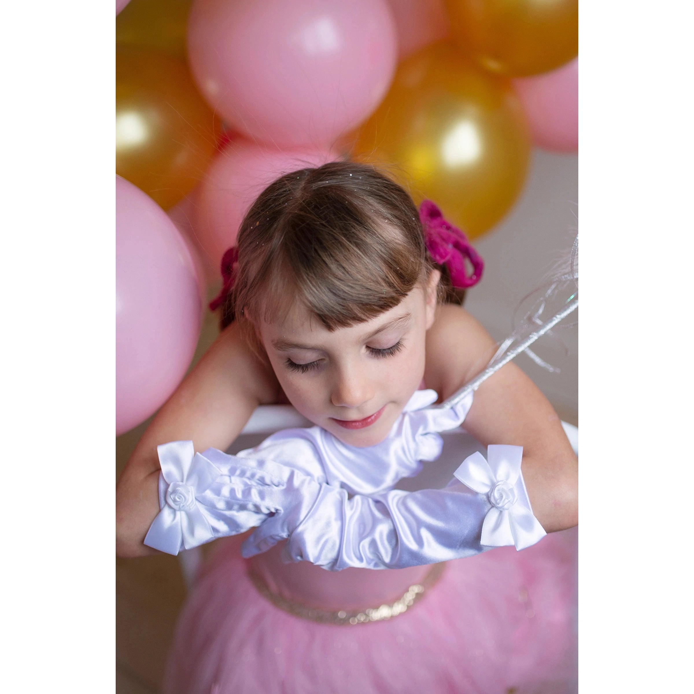 Suitable for Princesses or Her Majesty the Queen, Rapunzel's, Fairies and everything else in between. These long white satin gloves are elegantly made and are the perfect complement any costume and outfit!