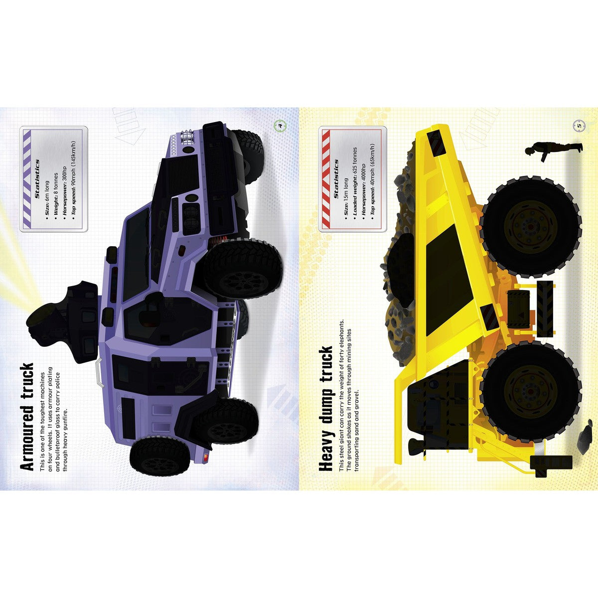 Readers can complete their own monster truck, army truck, fire engine and many more by adding sticker wheels, headlights and mirrors. With 10 pages of colourful stickers, this book will keep children entertained for hours! Full of the largest, loudest, and most powerful trucks.