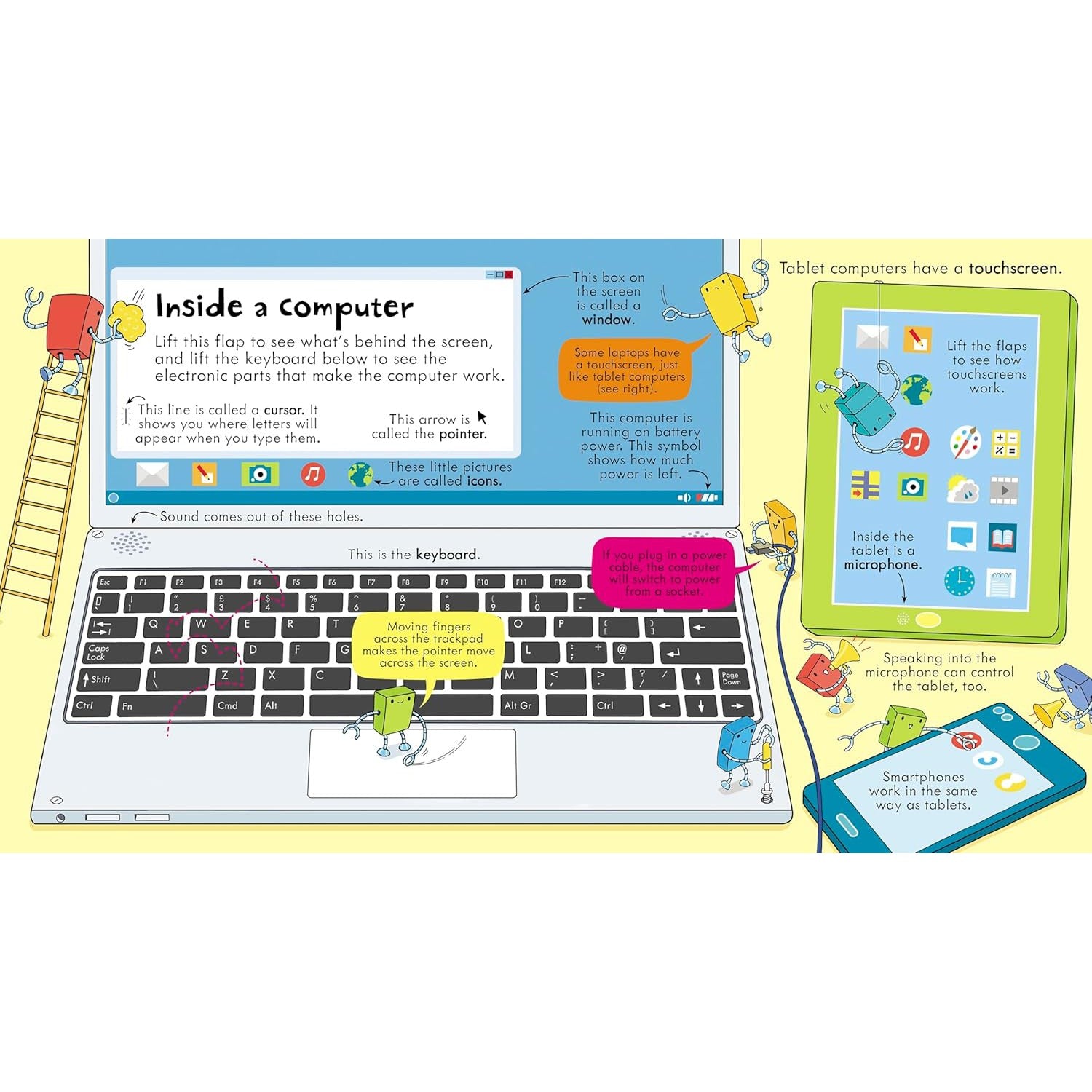 Just what goes on behind the screen, beneath the keyboard and inside the electronic "brain" of a computer? This colorful book has 70 flaps to lift to uncover what happens when a computer is switched on, how coding works and the story of the first computers. A fun and informative introduction to a key UK curriculum topic.