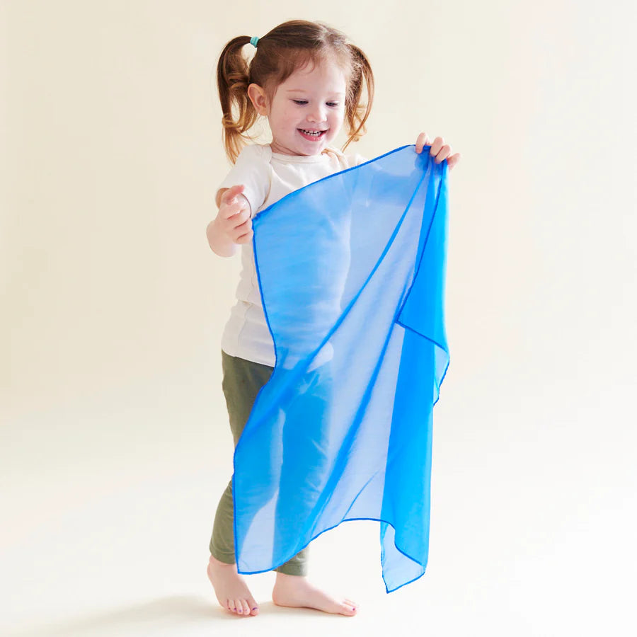 Sarah's Silks playsilks are 35" squares that are dyed with non-toxic, eco-friendly dyes. One of the most versatile toys, one moment playsilks are a canopy to sit under, the next they are boiling lava to jump over. One can be grass to feed your horse, and another might be a doll carrier, a cape, or soup in a pot! The play options with playsilks are as limitless as your imagination. Available in a rainbow of colours, choose your favourite or collect a variety for even more fun.