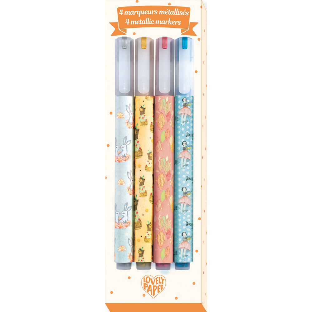 Jazz up your drawings, homemade cards, schoolwork, and more with this set of 4 vibrant metallic markers from Djeco. These high quality pens are beautifully illustrated and are just perfect to add that special touch to your artwork and projects.