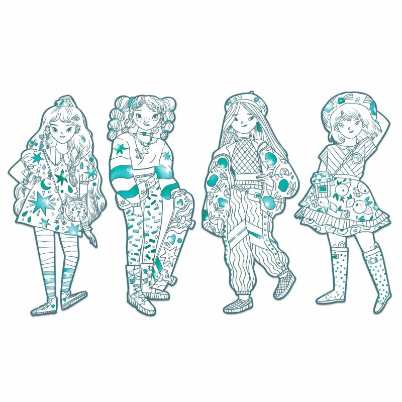 Adorn your own parade of fashionable ladies with these large-scale colouring cut-outs. A twist on the classic paper dolls, these die-cut silhouettes are 32cm tall with metallic details for you to colour-in, customize, and express your creativity.