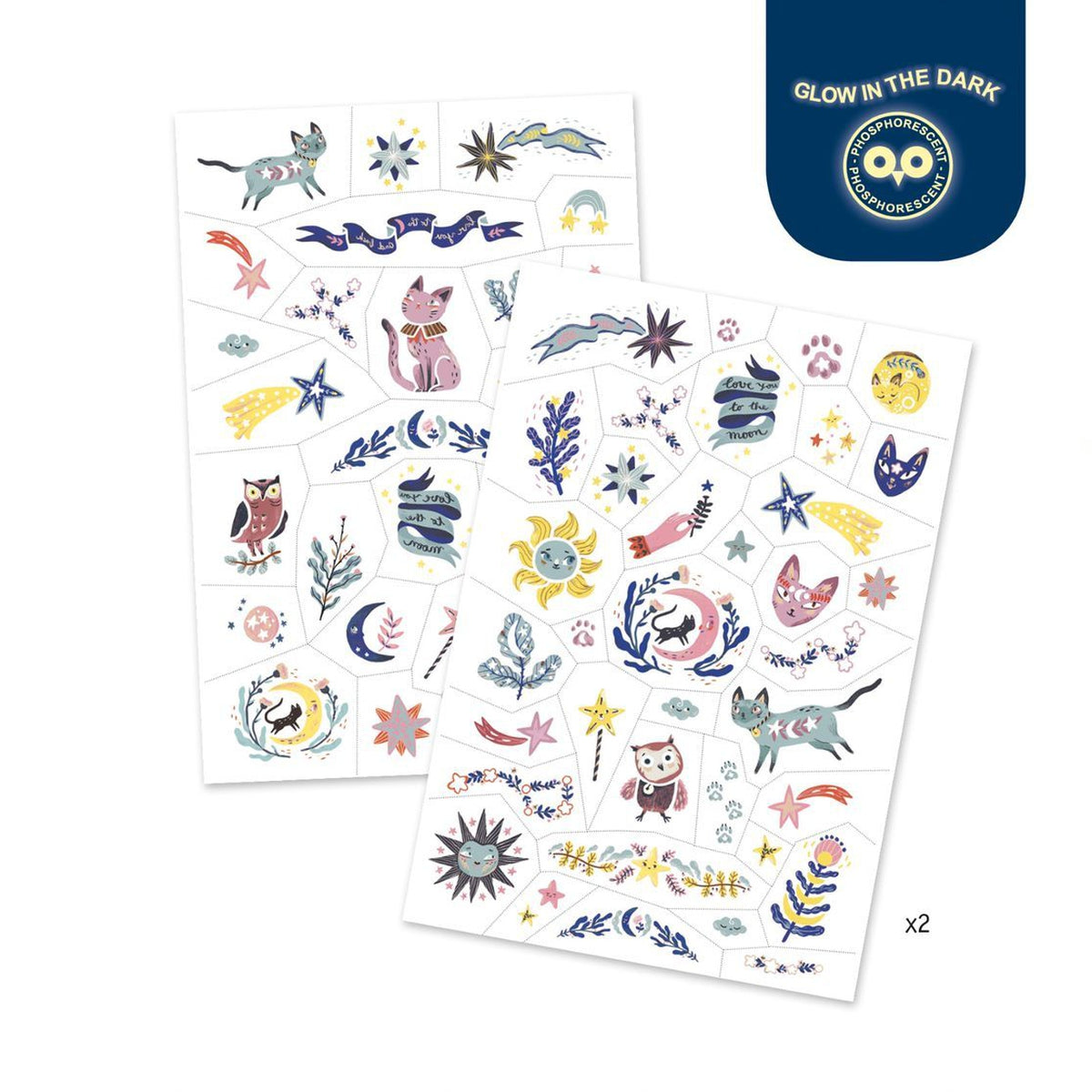 - contains 2 sheets of temporary glow-in-the-dark tattoos