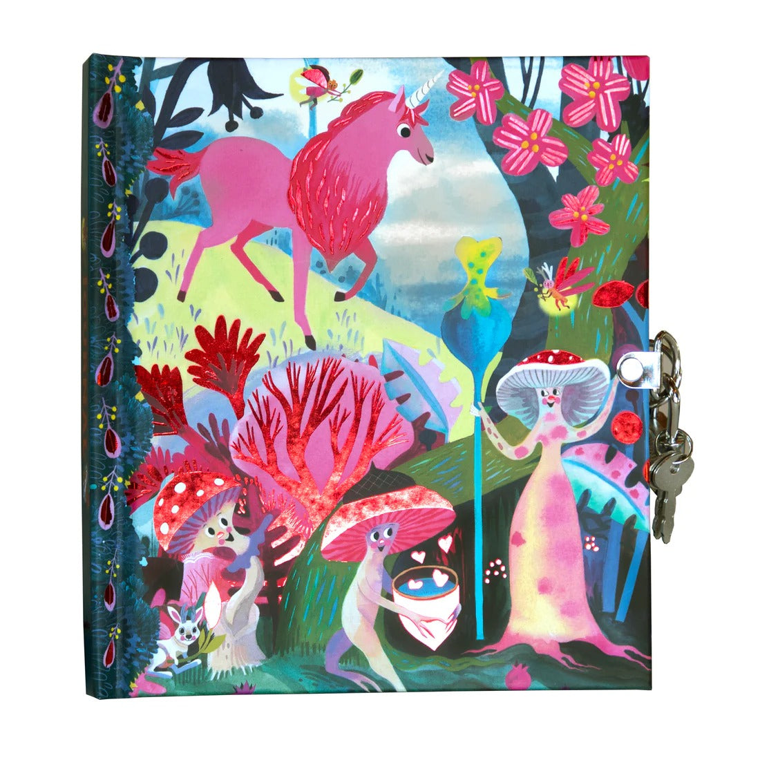 A foil stamped Journal to record your most extraordinary thoughts and adventures. This whimsical diary is vividly illustrated with a unicorn and magical companions. Cultivate creativity, literacy, and self-expression. Let your imagination run wild—the journal comes with a lock and two keys!
