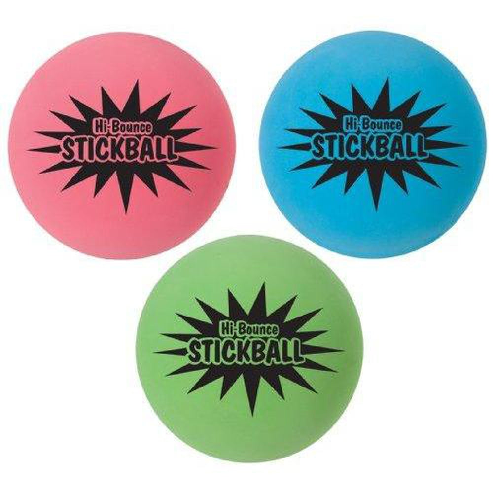 This ball bounces like no other! The Hi Bounce Stickball is a hollow rubber ball that it perfect for stick ball, hand ball, and any other bouncy fun. A classic retro ball that is also great for party favours, goodie bags, stocking stuffers, and Easter baskets.