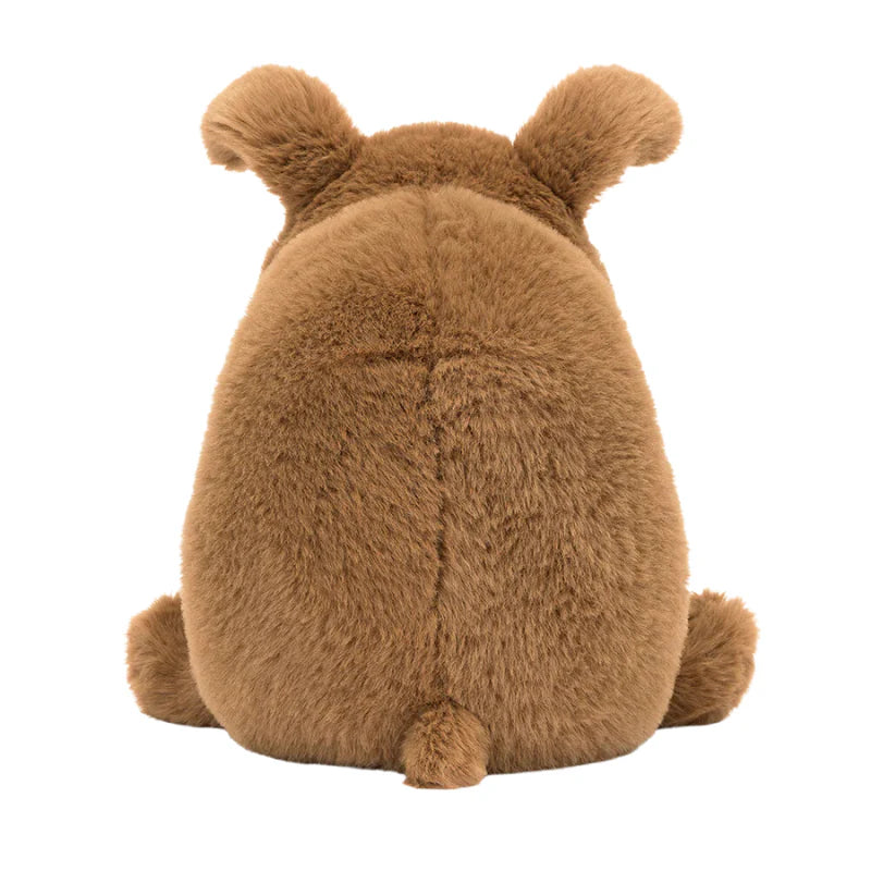 Derreck Dog may be frowning, but he’s really a super friendly fellow! Soft and squat in brown fur, Derreck has an oatmeal tummy perfect for belly rubs! With a grumpy face complete with stitched frown and cream suedette teeth, this darling dog is the perfect social companion to bring a little joy to every journey!